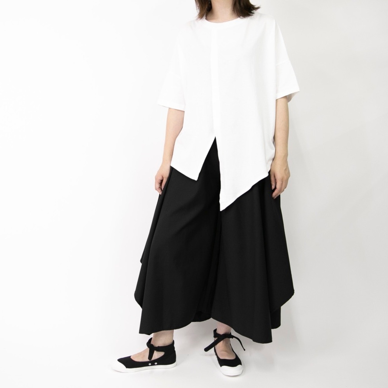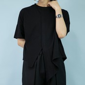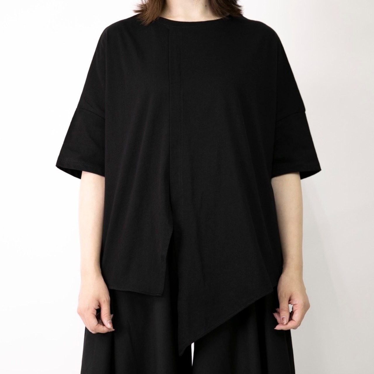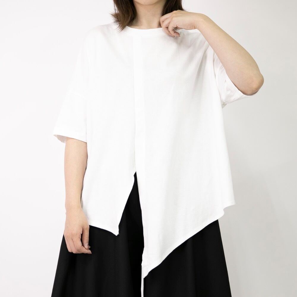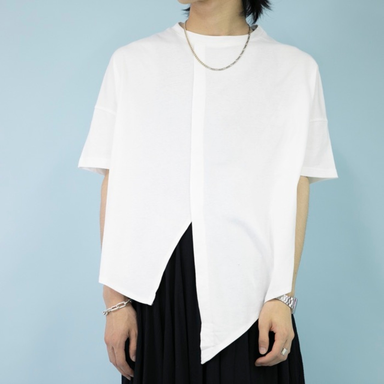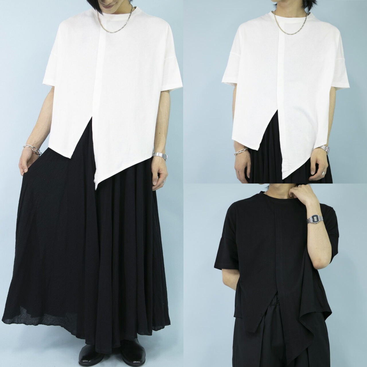 【Le sucood】【お支払い確認後20日以内発送】センタースリット アシンメトリー 変形カットソー Tシャツ トップス 半袖 5分袖 モード系 メンズ レディース 男女兼用 ユニセックス 春 夏 秋 ブラック ホワイト 黒 白 フリーサイズ | Le sucood