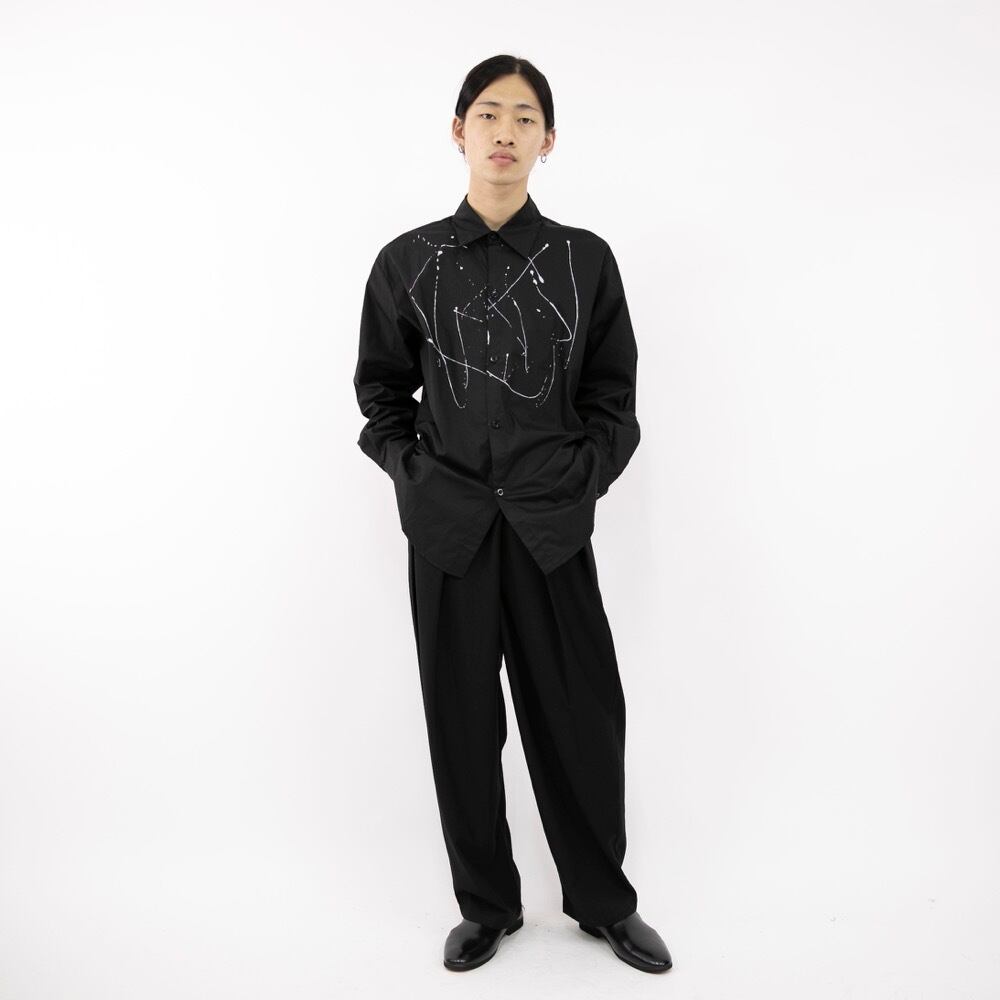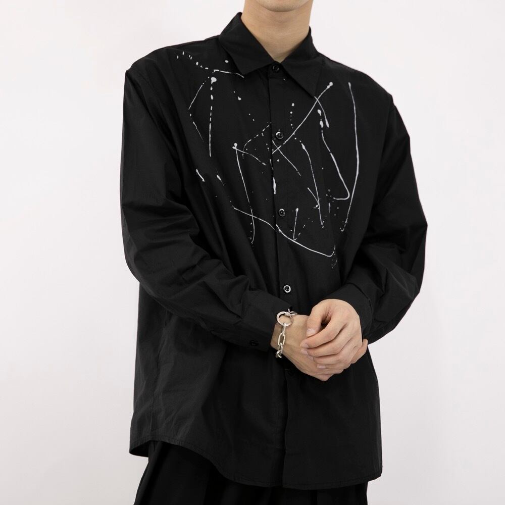 絵の具を垂らしたようなデザインのシャツ。