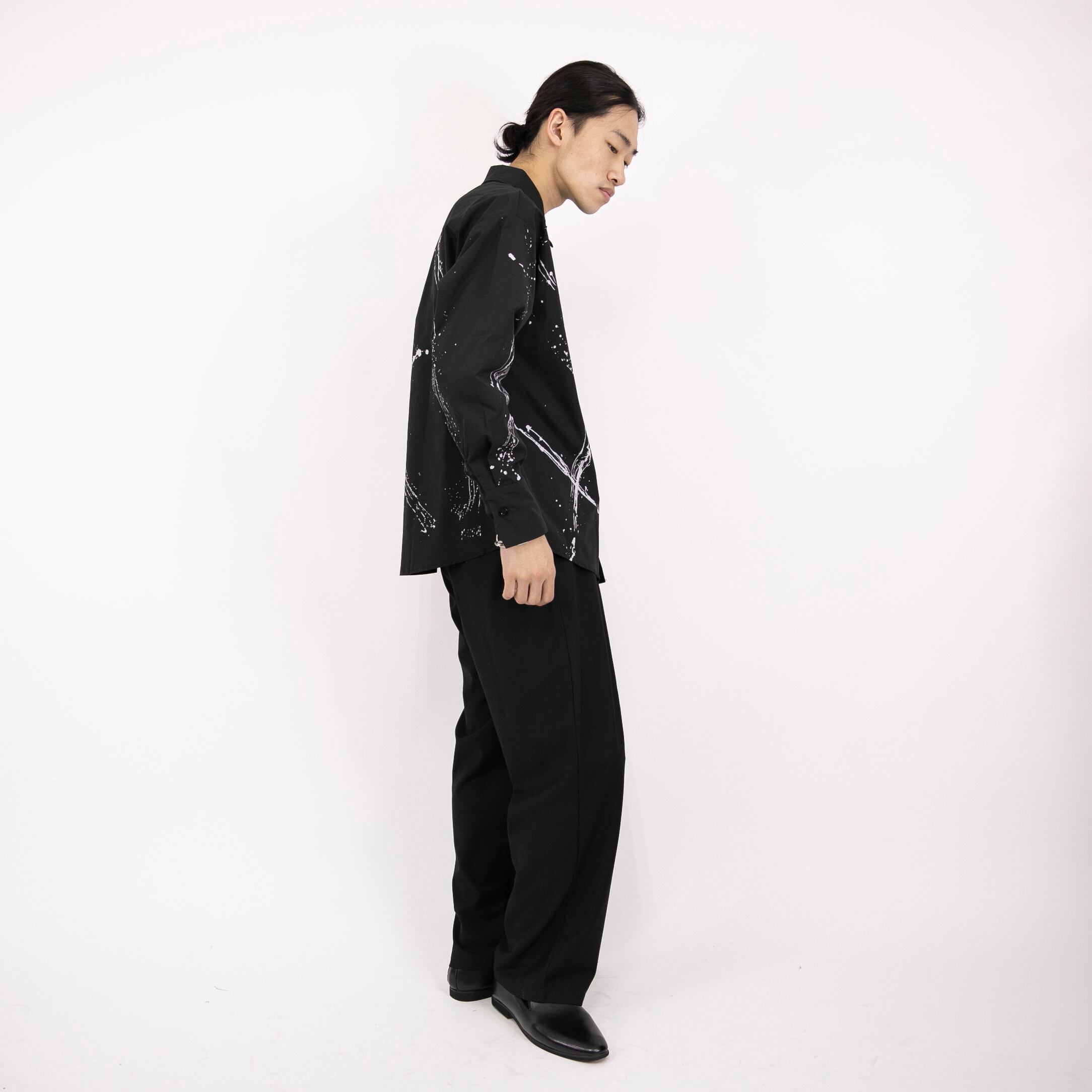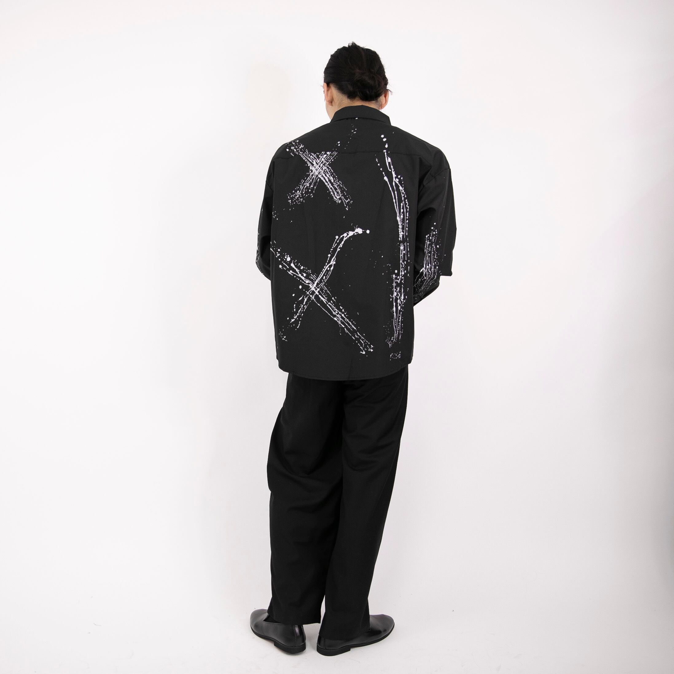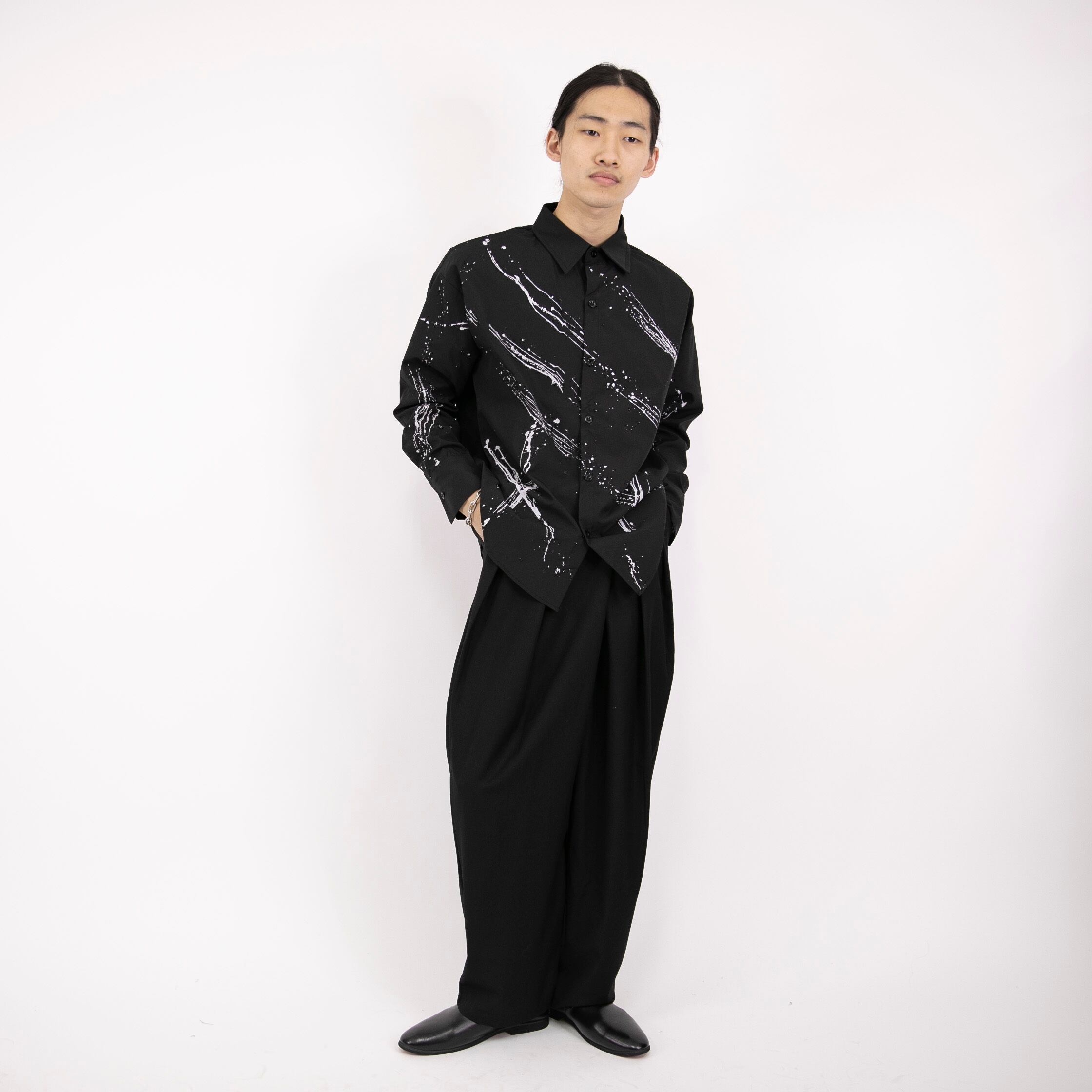 【Le sucood】【お支払い確認後20日以内発送】ペインティングシャツ モード系 メンズ レディース 個性的 ロングシャツ 柄シャツ 総柄 シャツ ストリート 黒 ルシュクード | Le sucood