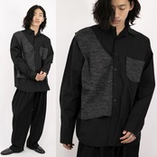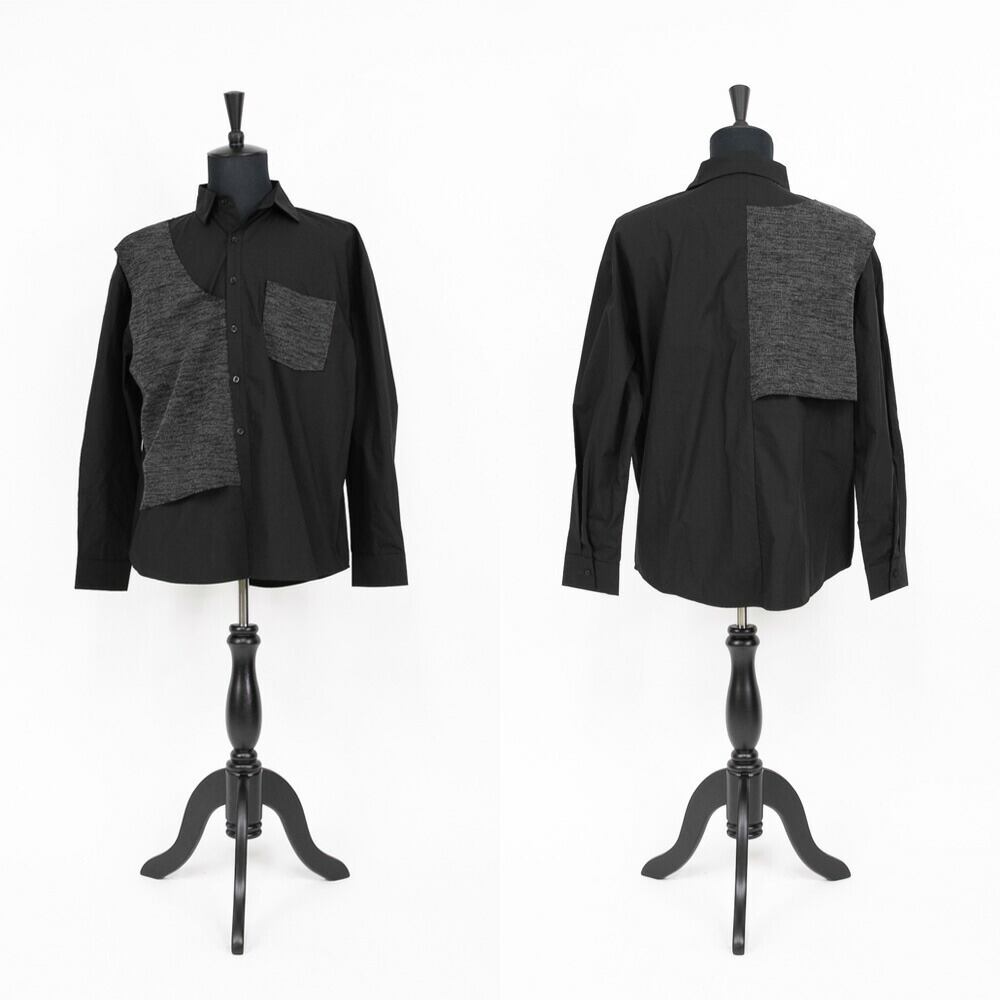 ニット生地が付いているアシンメトリーなデザインのシャツです。
