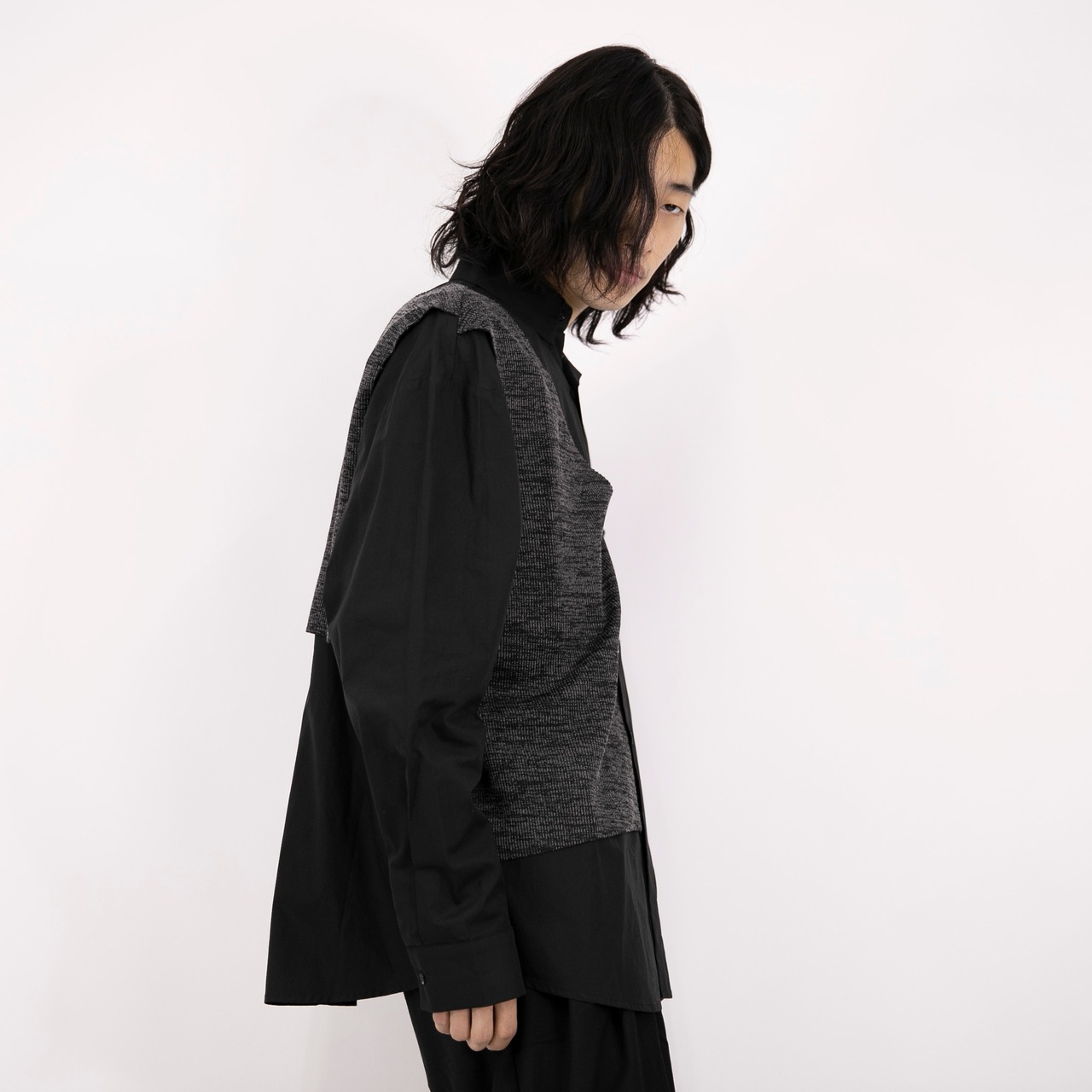 【Le sucood】【お支払い確認後20日以内発送】レイヤード シャツ 個性的 モード系 レディース メンズ 変形 ニット アシンメトリー ロングシャツ 黒 レイヤード ルシュクード | Le sucood
