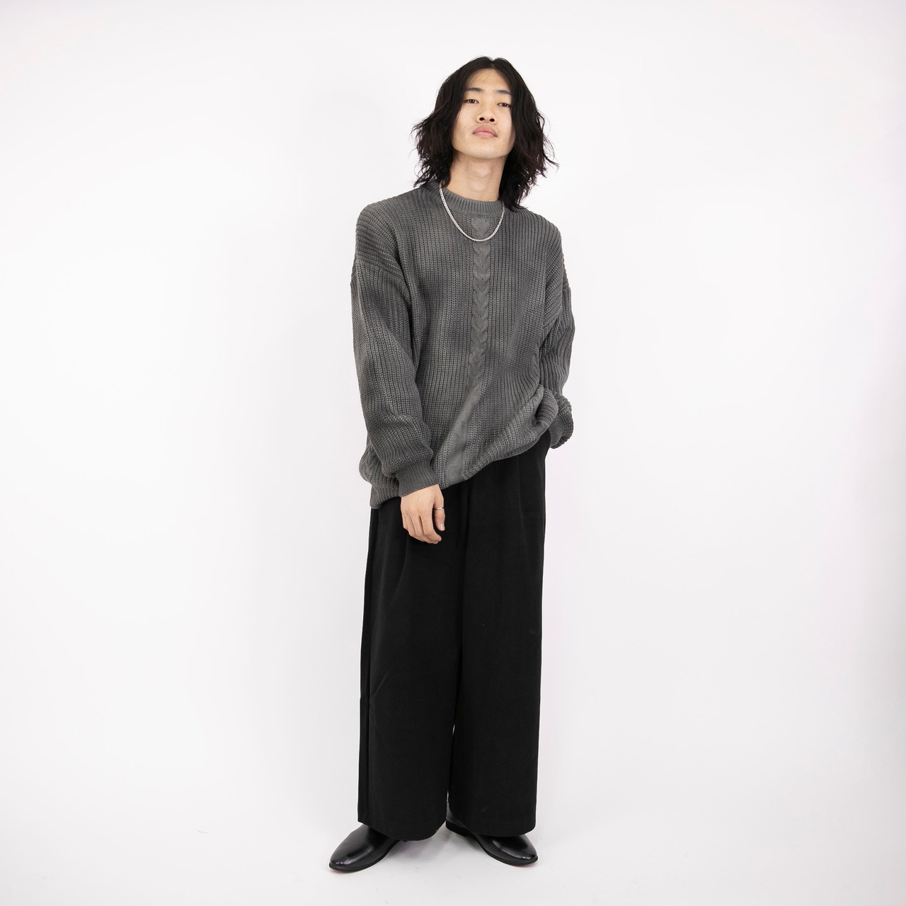 イージーパンツやスキニーパンツ、様々なパンツとも合わせやすい1枚です。