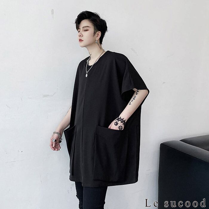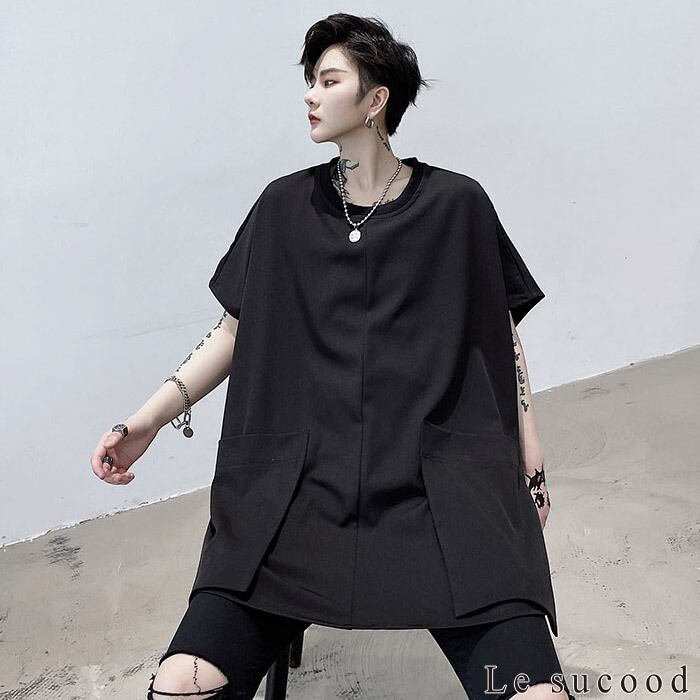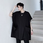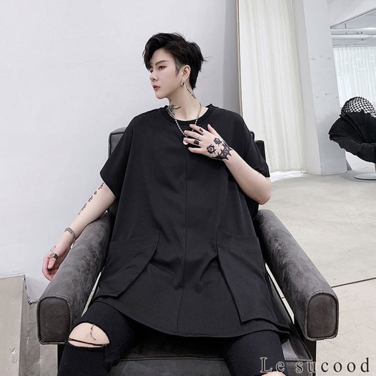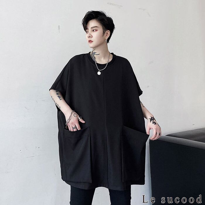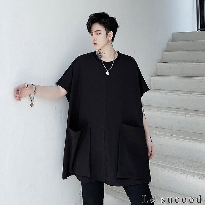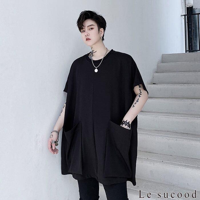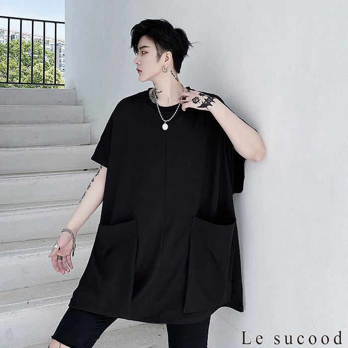 【Le sucood】【お支払い確認後20日以内発送】ビッグポケットオーバーサイズTシャツ ビッグTシャツ ダボT ビッグシルエット オバーサイズ カットソー ゆったり ドルマン tシャツ ドロップショルダー 無地 シンプル メンズ モード系 個性的 ストリート 原宿系 青文字系 | Le sucood