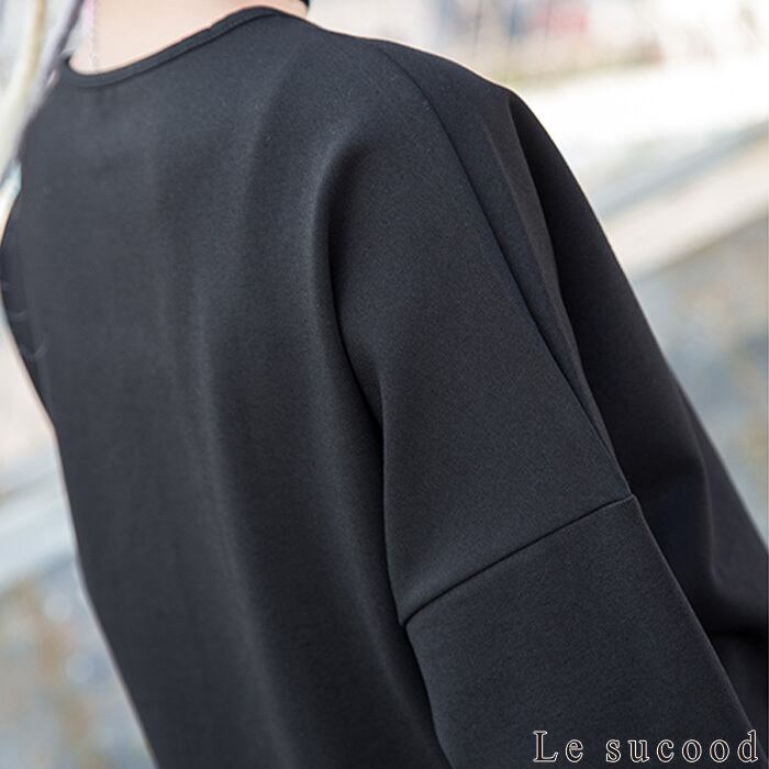 【Le sucood】【お支払い確認後20日以内発送】腰ひもアシメシャツ リボン ドレープ 変形 アシンメトリー 長袖 カットソー ロングシャツ クルーネック ドロップショルダー デザインシャツ ブラウス お洒落 モードストリート 和風 Tシャツ モード系 アシンメトリー モード ファッション レディース 個性的 | Le sucood