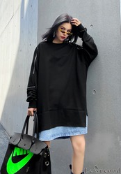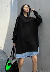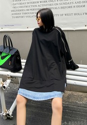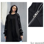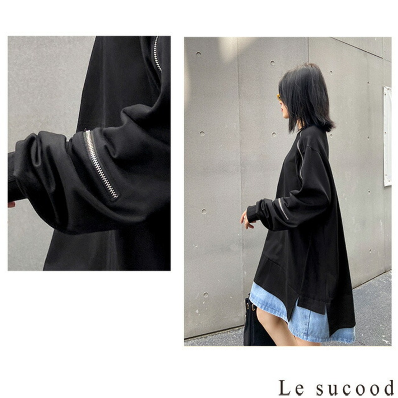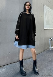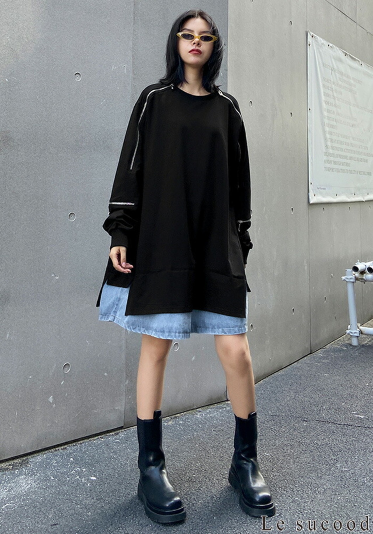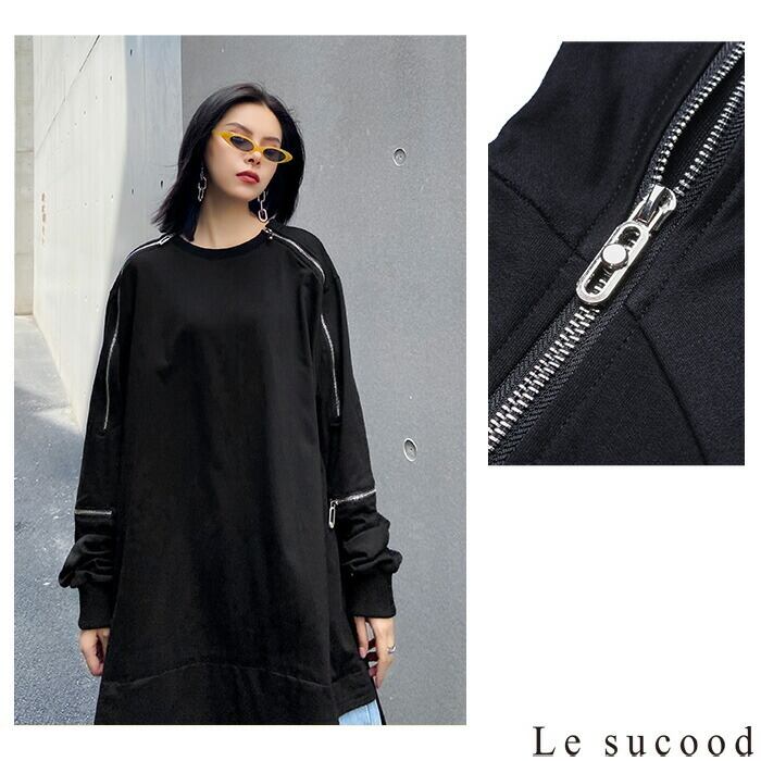 【Le sucood】【お支払い確認後20日以内発送】デニム切り替えロングジップTシャツ Tシャツワンピ ロングTシャツ ロングワンピ ラグランワンピ 変形 オーバーサイズ ゆったり レーヤードデザイン ミニ丈 膝上丈 大人カジュアル 大人可愛い ガーリー レディース モード系 個性的 ストリート 原宿系 青文字系 | Le sucood