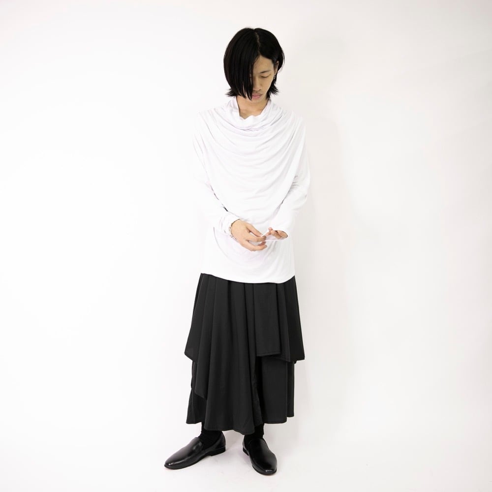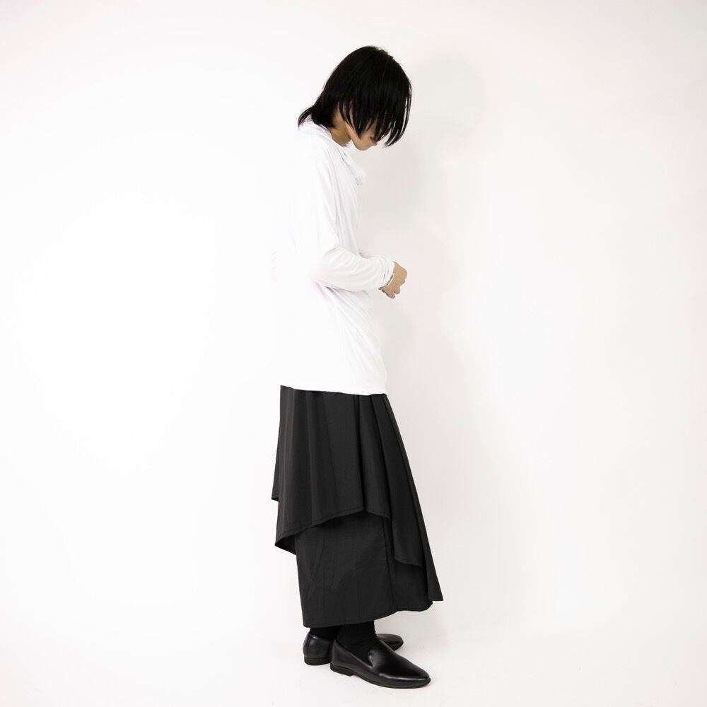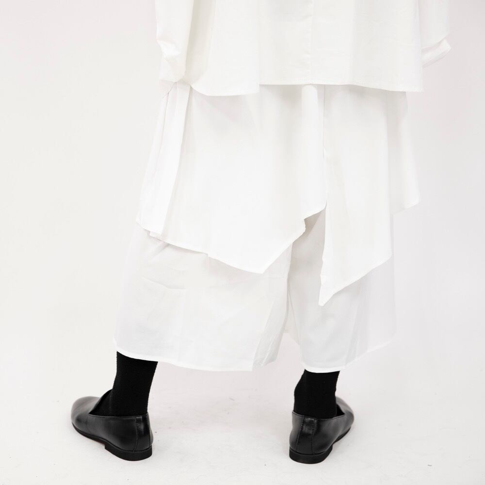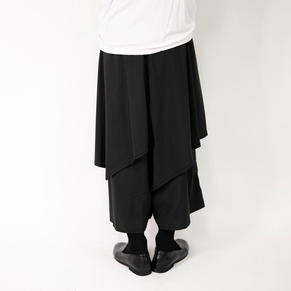 スカートのようにも見える、ひらひらとした重なりが魅力的なワイドパンツです。