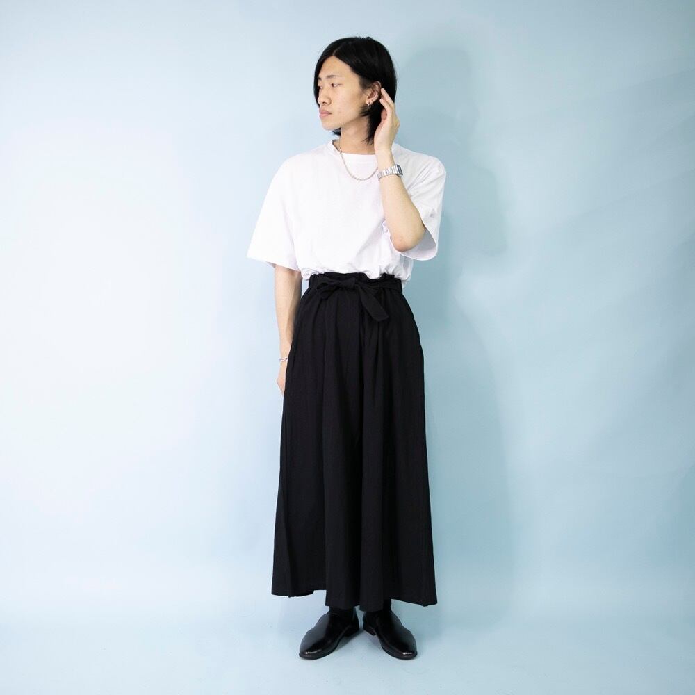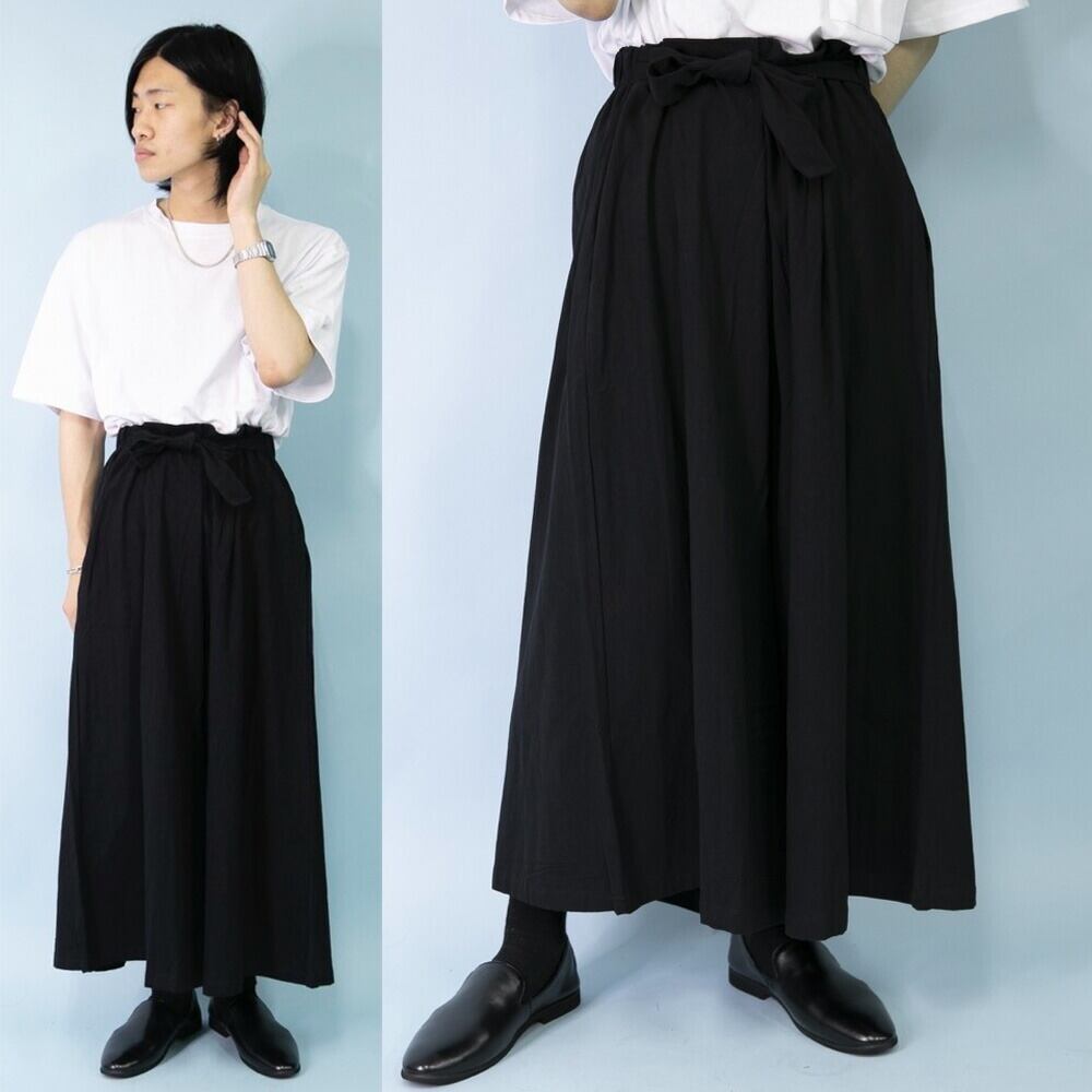 【Le sucood】【お支払い確認後20日以内発送】ウエストマークワイドパンツ ワイド ビッグシルエット ひも リボン ブラック 黒 黒コーデ オールブラック モード系 カジュアル シンプル 無地 ストリート 袴パンツ モードストリート ユニセックス | Le sucood