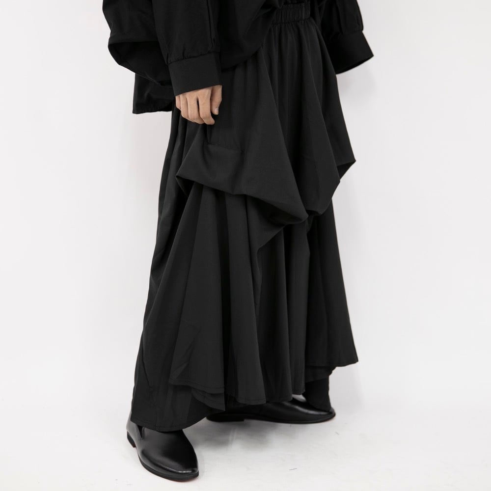 【Le sucood】【お支払い確認後20日以内発送】ボリュームスカート 個性的 モード系 変形 メンズ レディース スカート ロングスカート メンズスカート アシンメトリー レイヤード 黒 ルシュクード