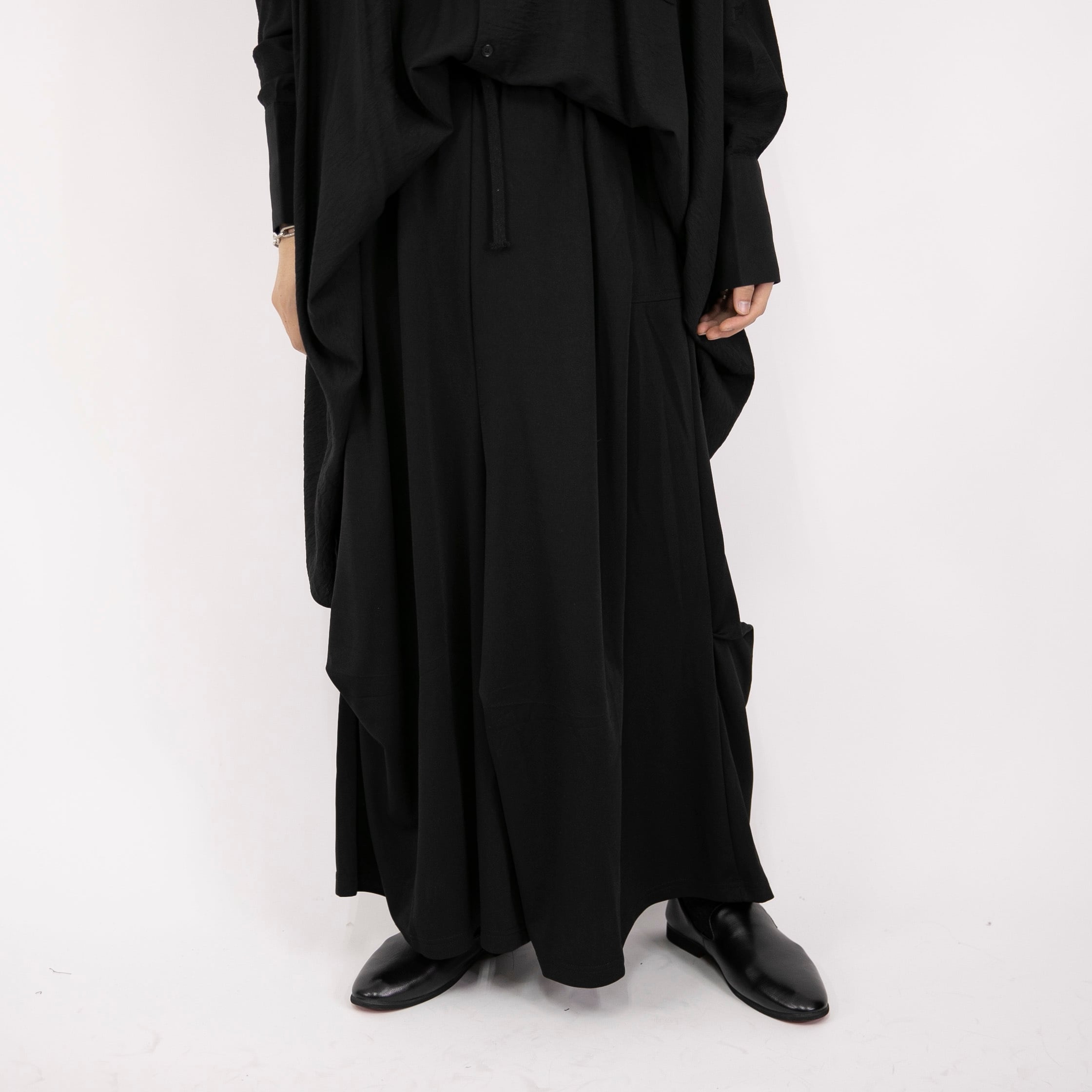 【Le sucood】【お支払い確認後20日以内発送】ルーズカジュアルパンツ ドレープパンツ 袴 ワイドパンツ ガウチョ ロング ブラック 黒 モード系 オールブラック ゆったり 個性 カジュアル 上品 メンズ レディース ユニセックス | Le sucood
