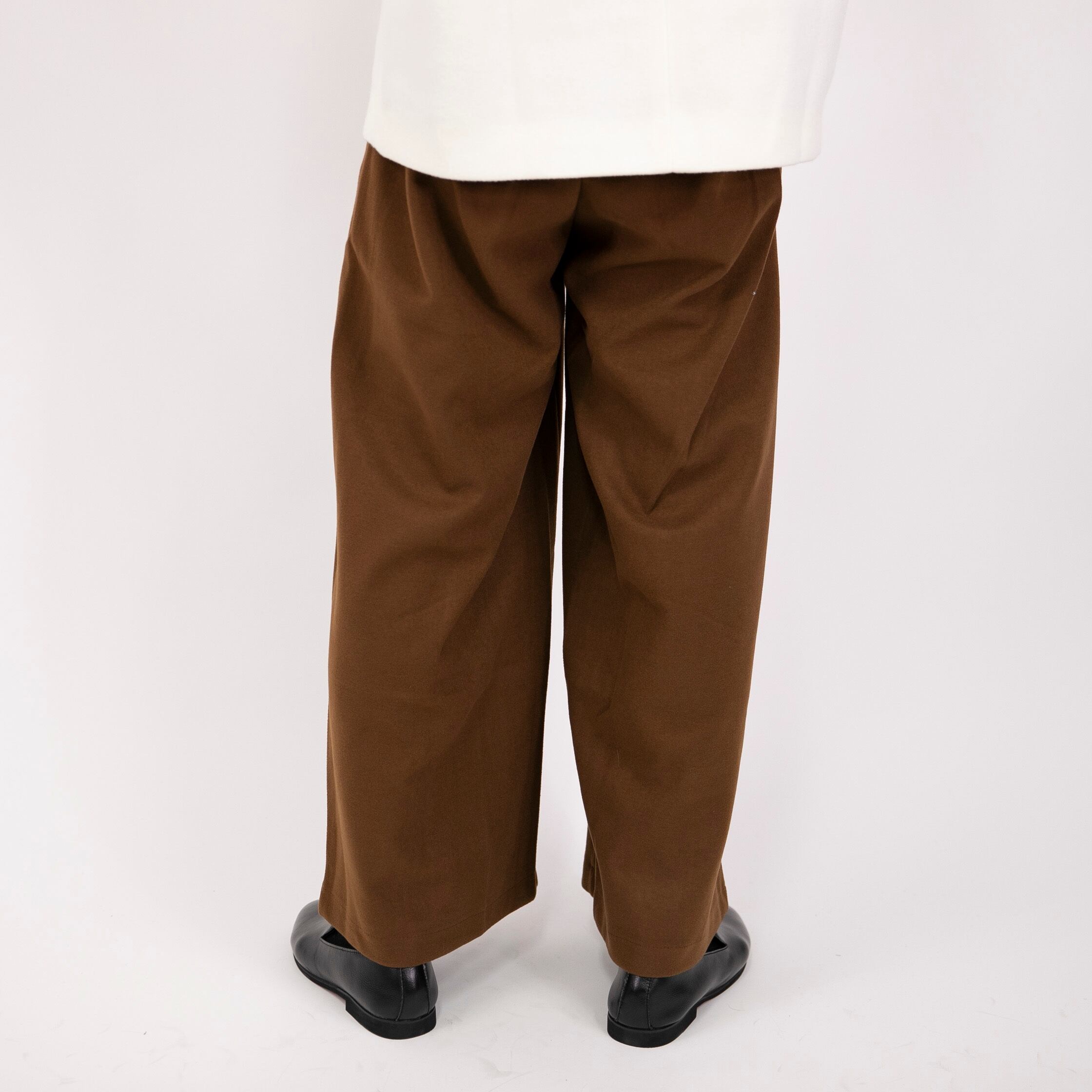 リラックス感のあるワイドシルエットがモードらしさを高めるパンツ。