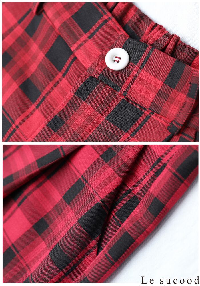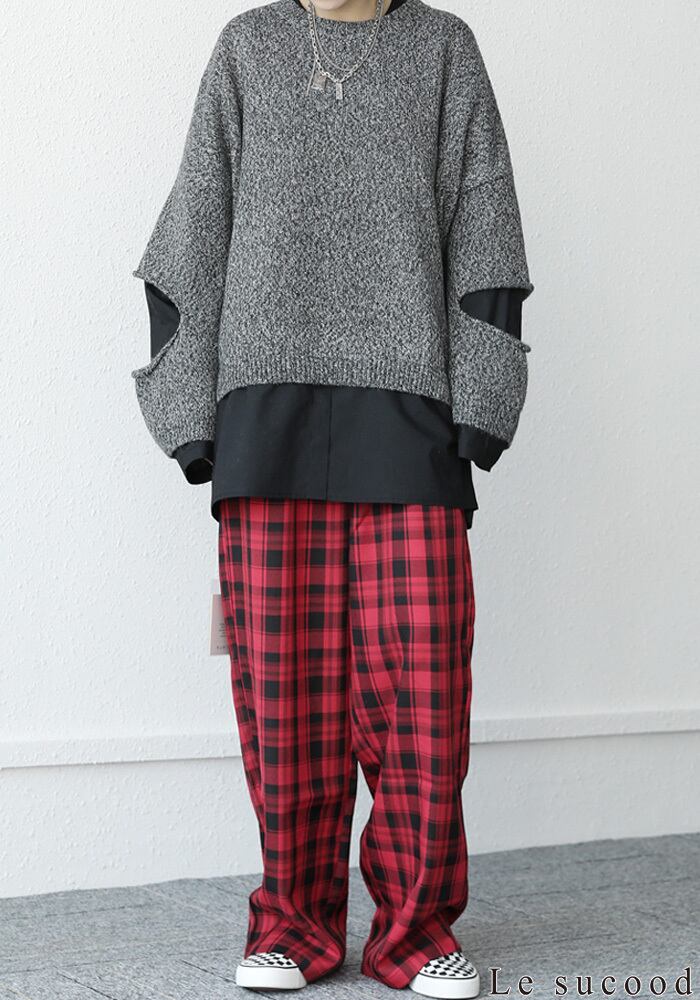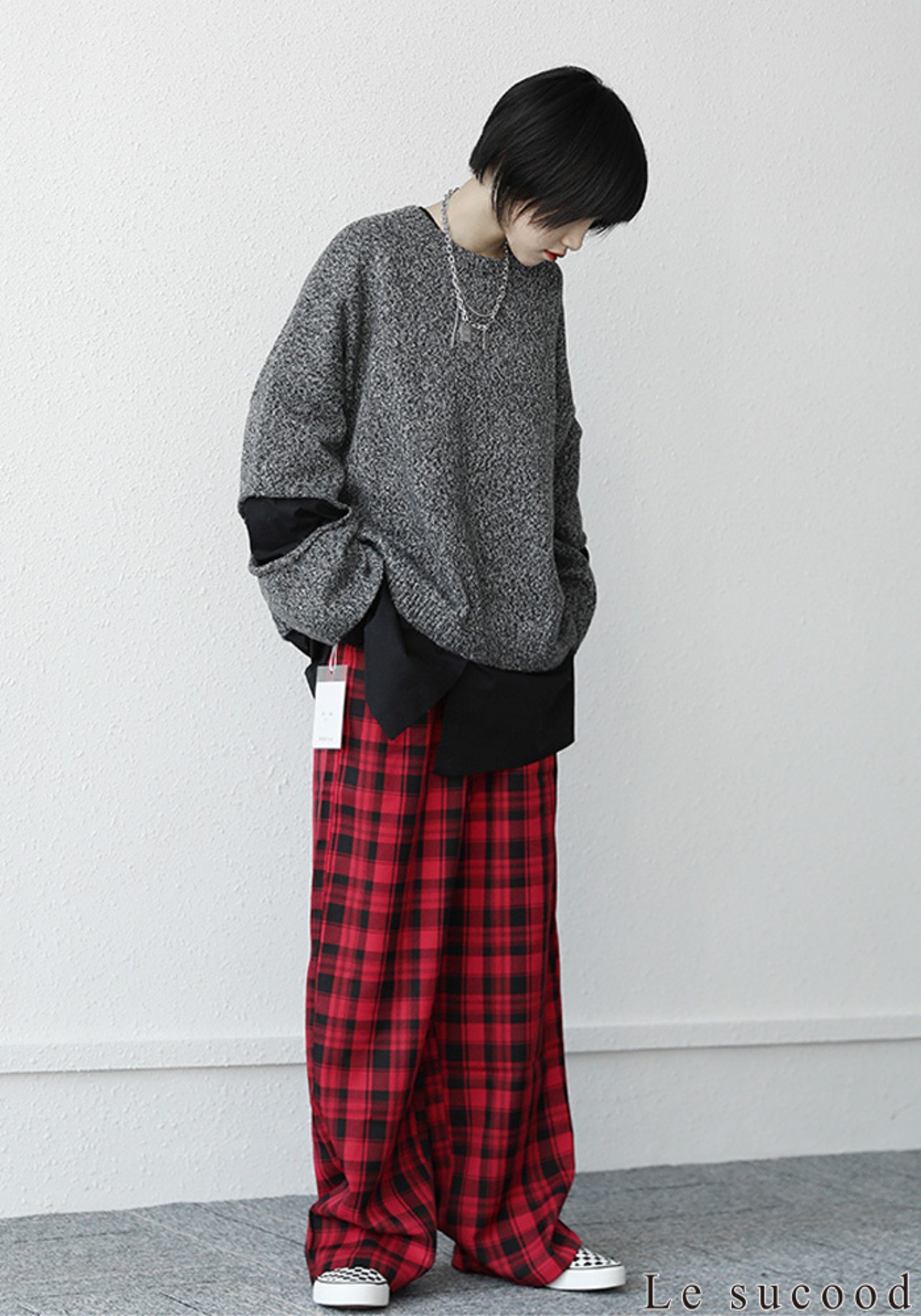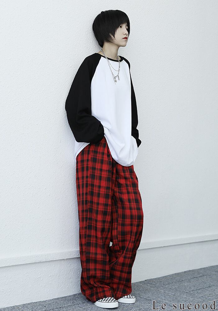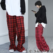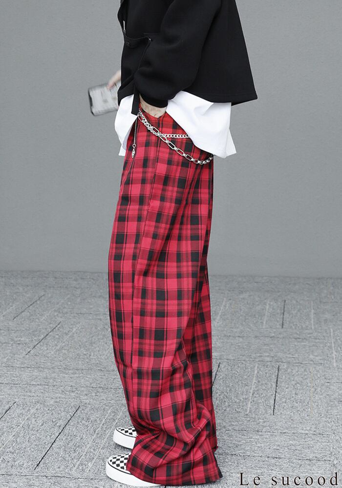 【Le sucood】【お支払い確認後20日以内発送】赤チェックワイドパンツ チェックパンツ チェック柄パンツ ワイドチェックパンツ ワイドパンツ ワイドシルエット ゆったり ダボパン ロングパンツ カジュアル トラッド パンク ロック ロリータ レディース メンズ モード系 ストリート 原宿系 青文字系 | Le sucood