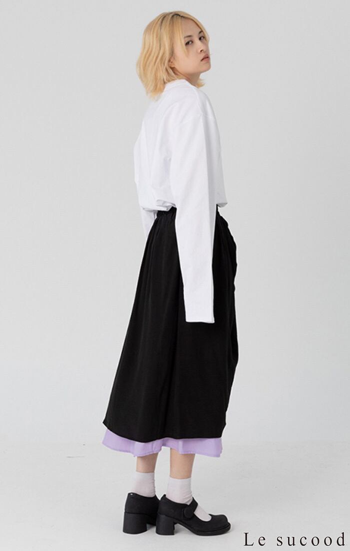 1枚でお洒落なレイヤードスタイルが楽しめるスカートです。