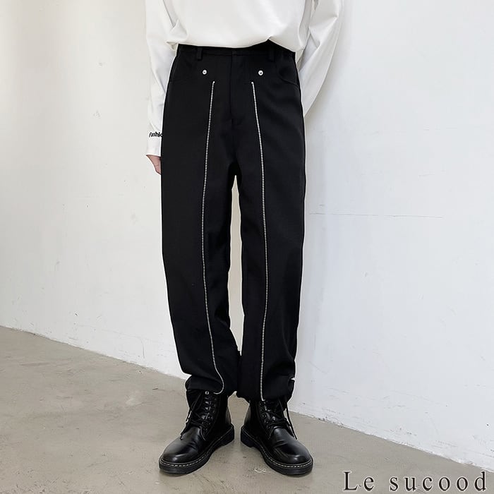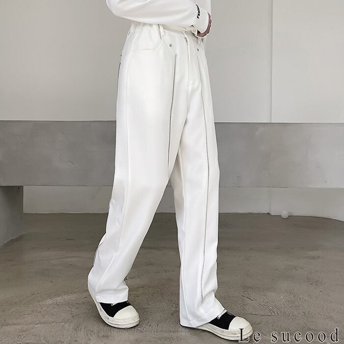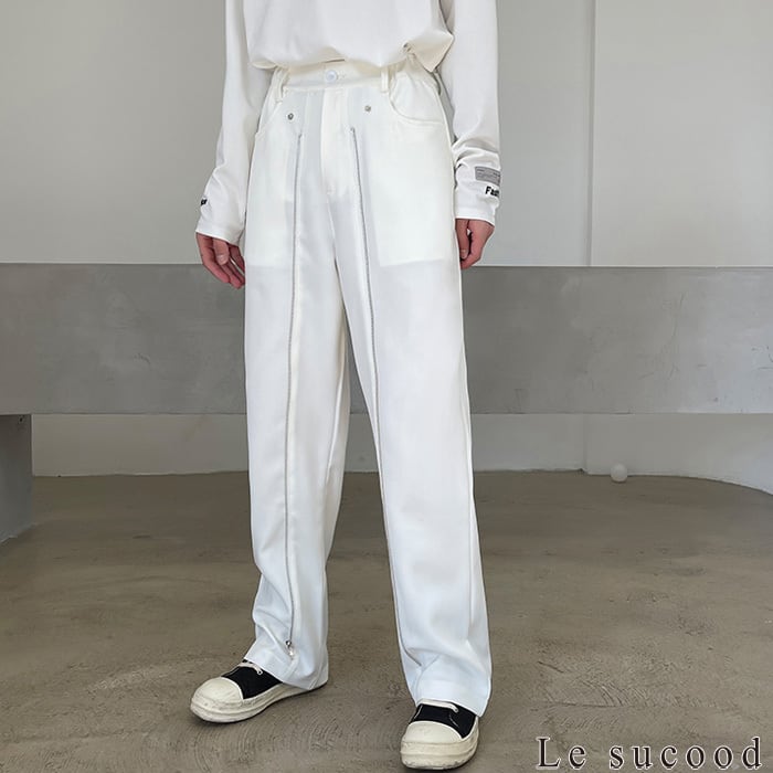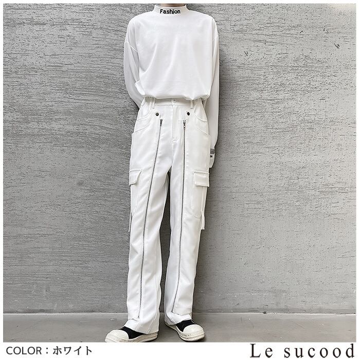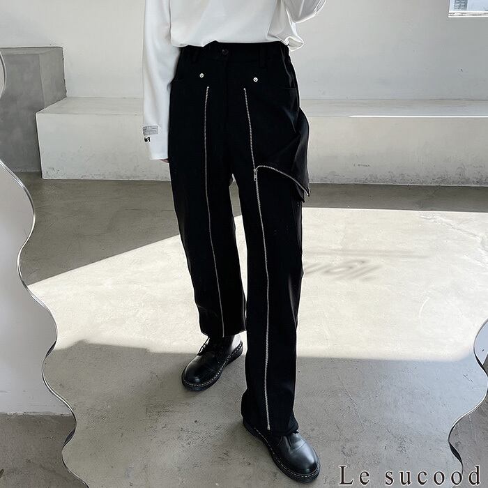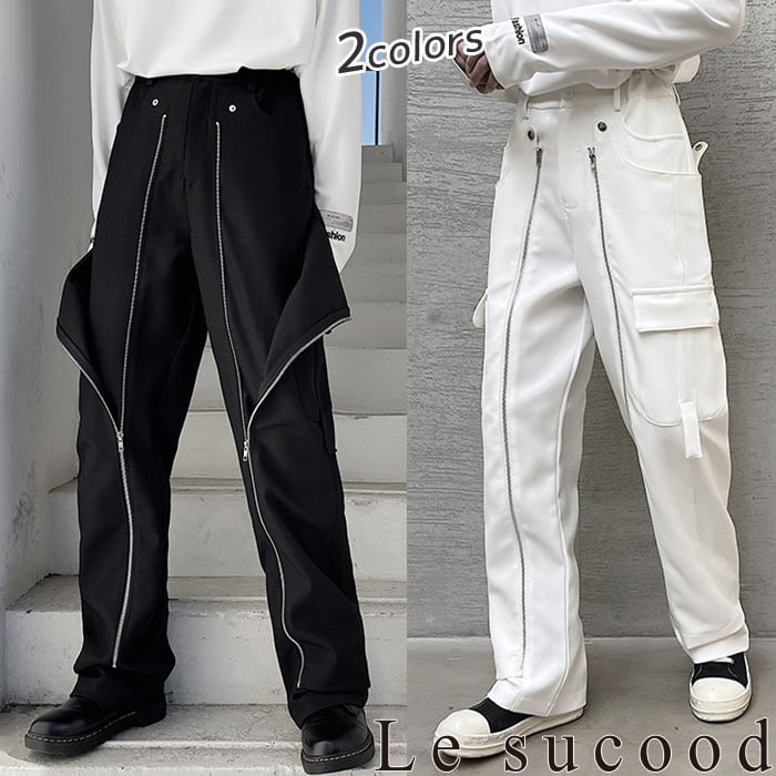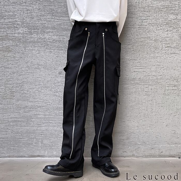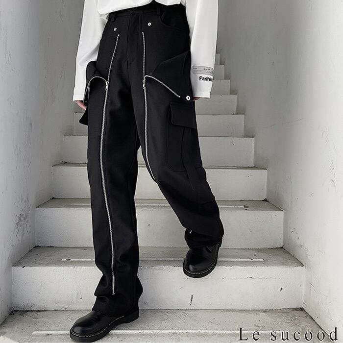 【Le sucood】【お支払い確認後20日以内発送】ラップ風ジップストレートパンツ カーゴパンツ ワイドパンツ フロントジップパンツ オーバーサイズ 2WAYパンツ ベイカーパンツ ロングパンツ ラップパンツ ワークパンツ ボトム 個性的 ゆったり カジュアル メンズ モード系 ストリート 原宿系 青文字系 | Le sucood