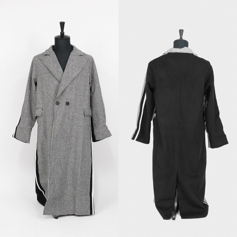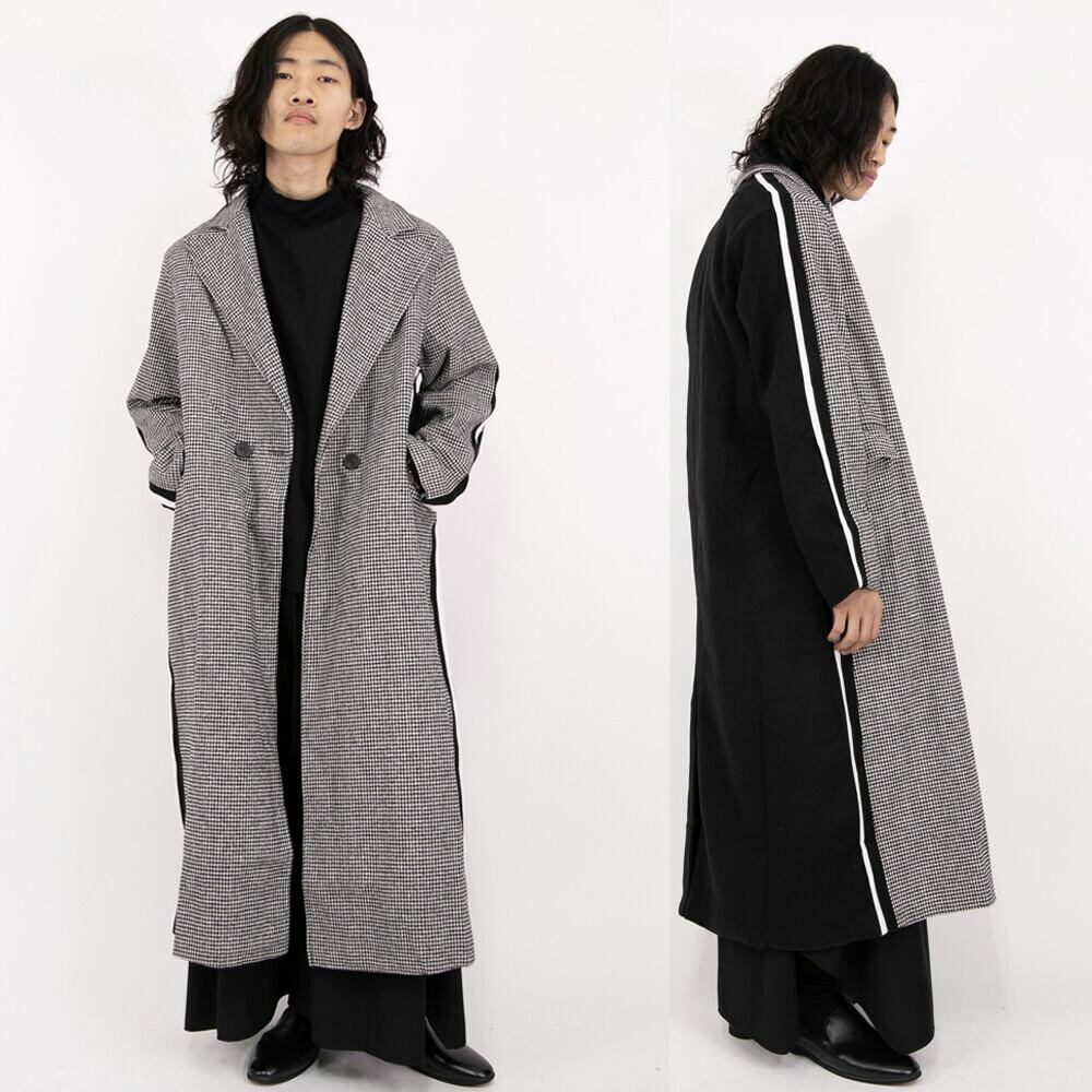 【Le sucood】【お支払い確認後20日以内発送】切り替え ロングコート アシンメトリー 個性的 モード系 トレンチコート チェスターコート チェック バイカラー ツートン 黒 ルシュクード | Le sucood