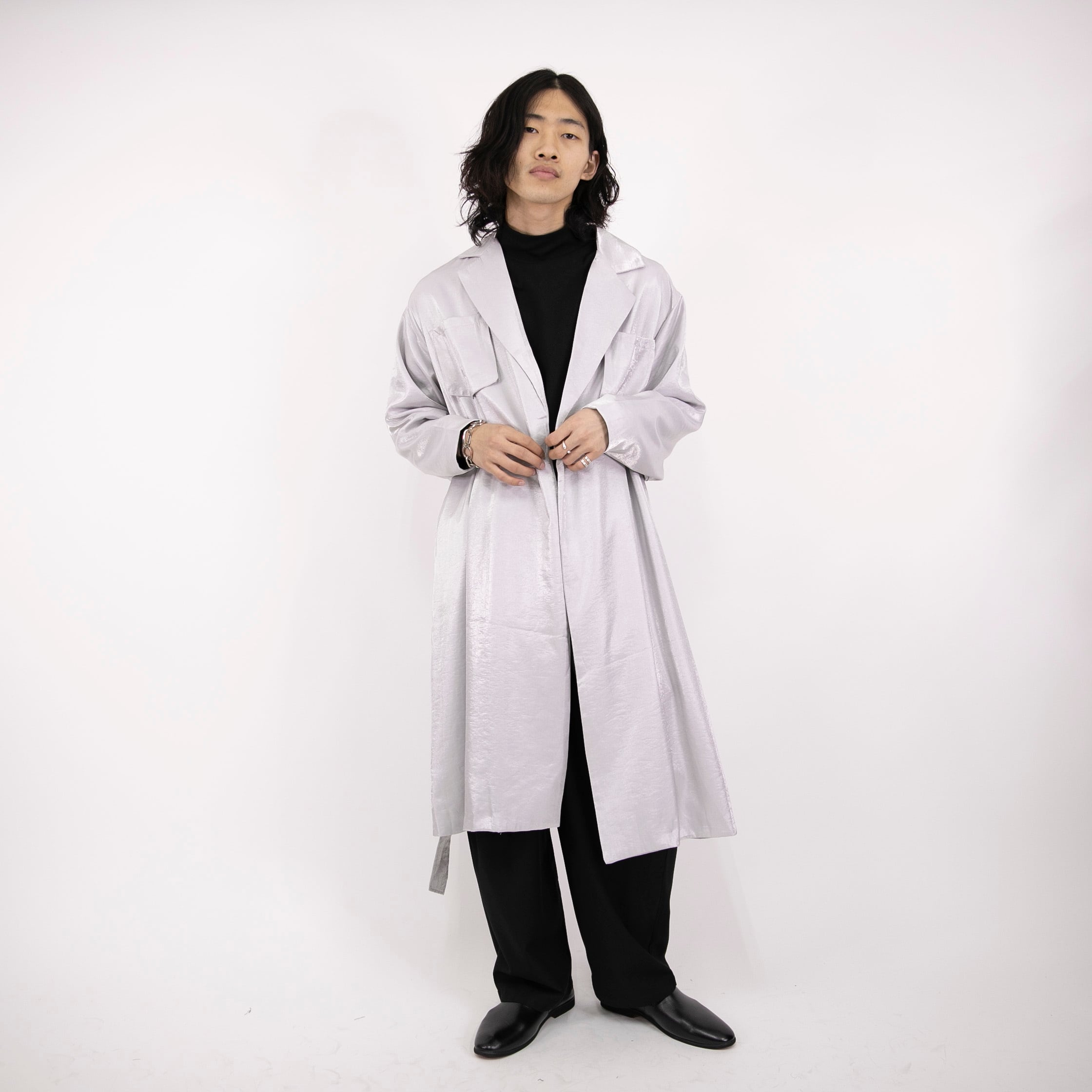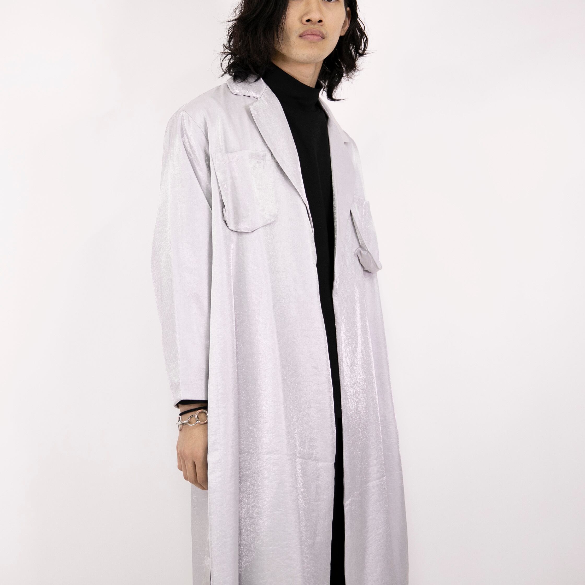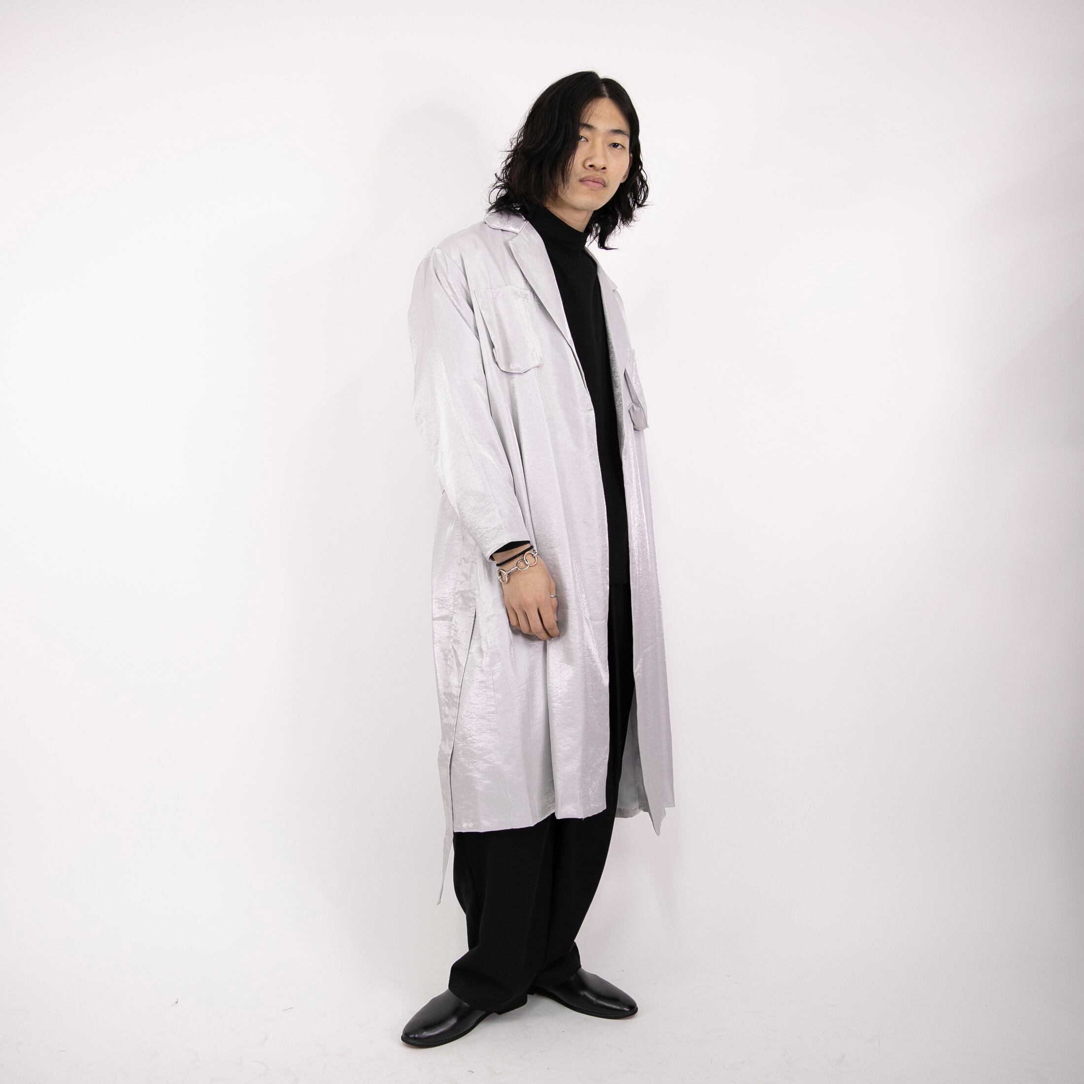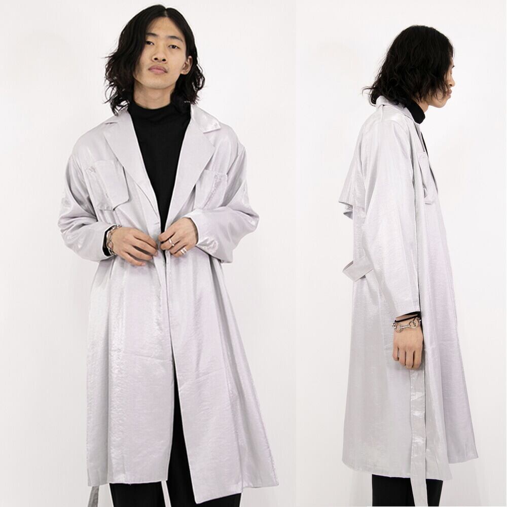 【Le sucood】【お支払い確認後20日以内発送】シルバーコート ガウンコート ロングコート 個性的 モード系 メンズ レディース ストリート系 衣装 光沢 キラキラ ルシュクード | Le sucood