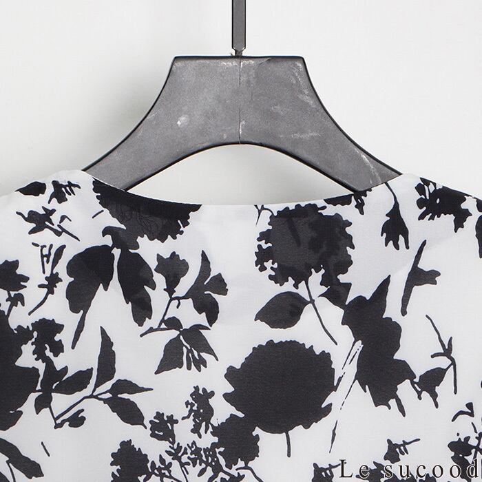 可愛くなりすぎないモノトーンの花柄で、大人っぽく着こなせる1着♪