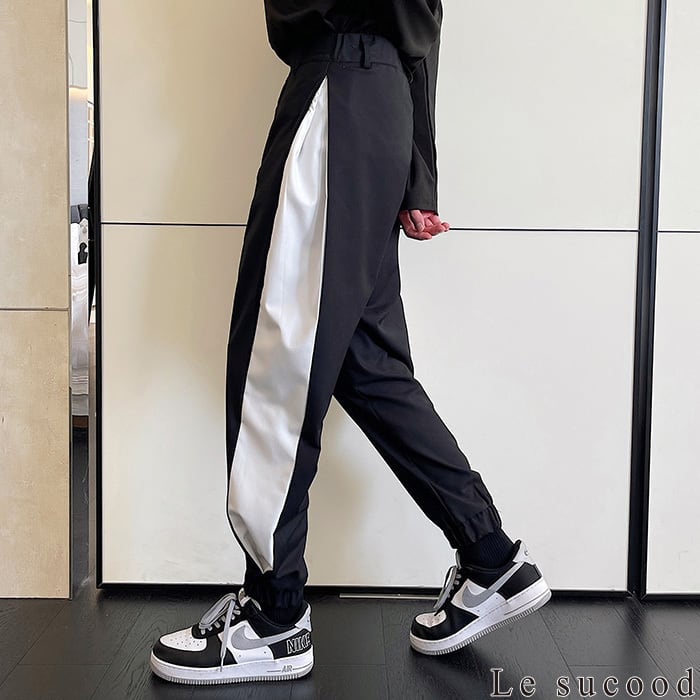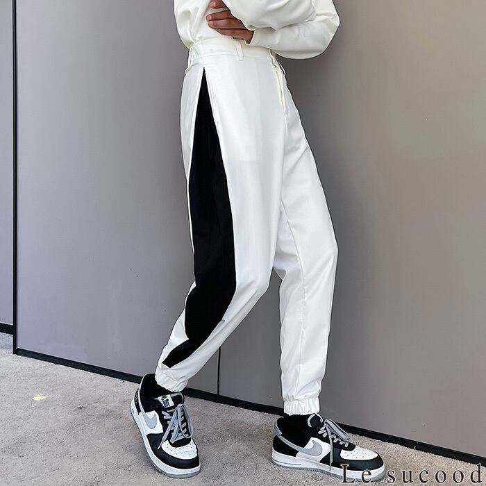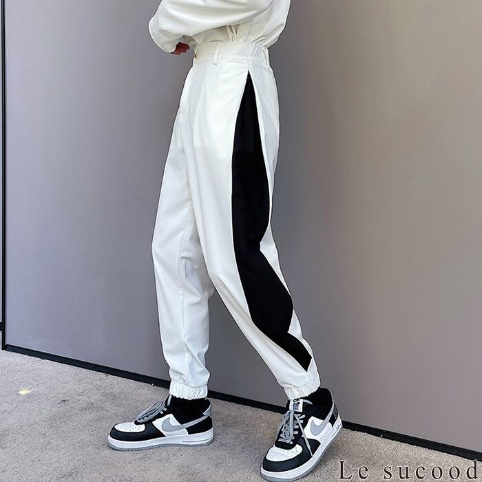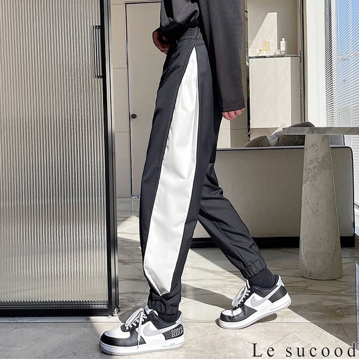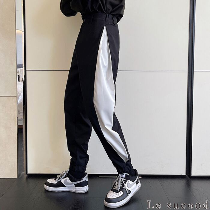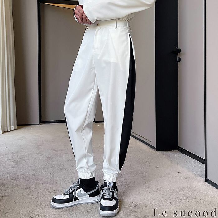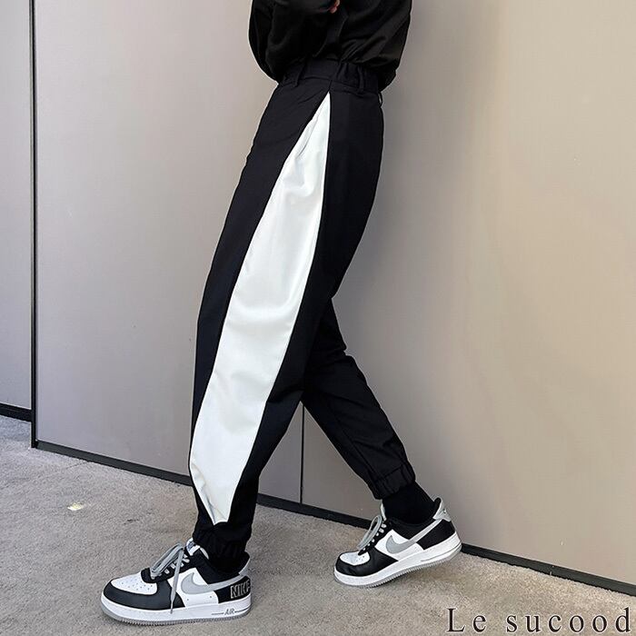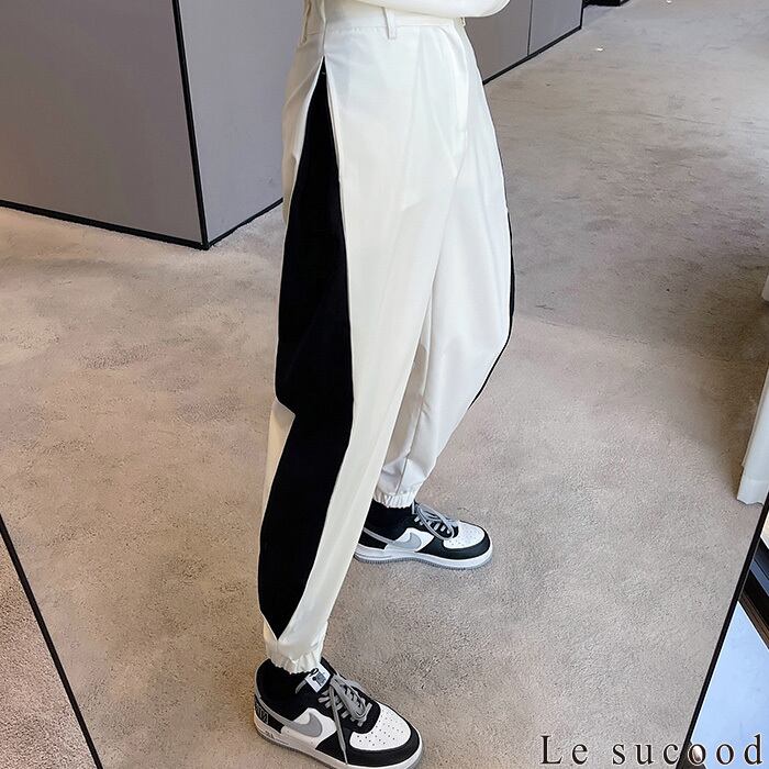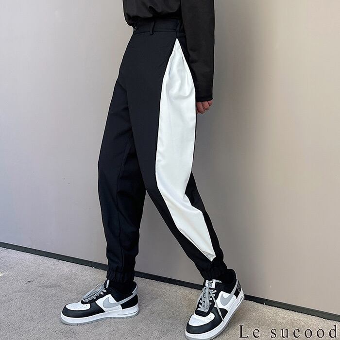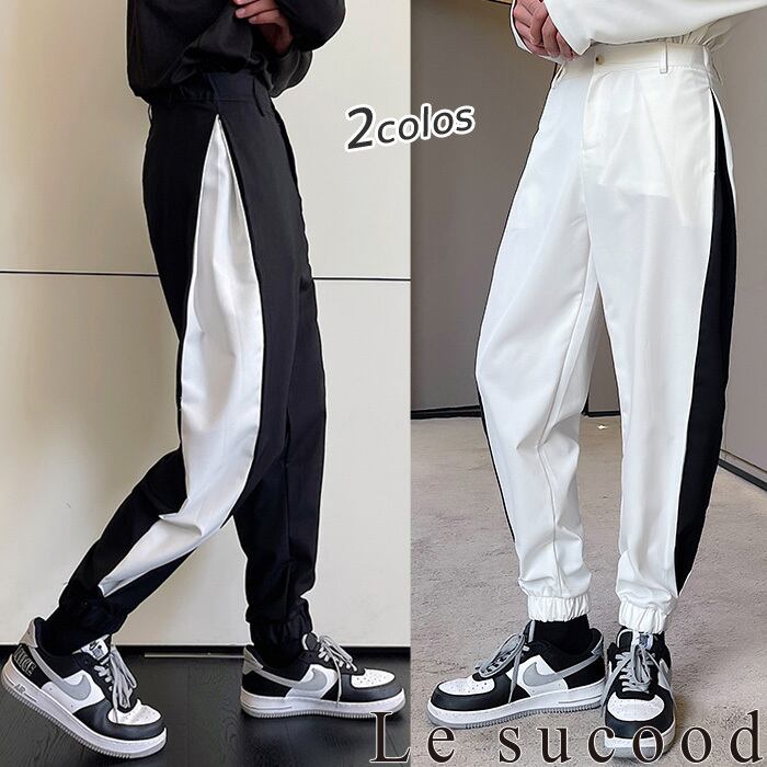 【Le sucood】【お支払い確認後20日以内発送】サイド切替コントラストパンツ ハーレムパンツ スウェットパンツ トラックパンツ サルエルパンツ ジョガーパンツ バイカラーパンツ 切り替え ウエストゴム ツートーン ゆったり 個性的 カジュアル メンズ モード系 ストリート 原宿系 青文字系 | Le sucood