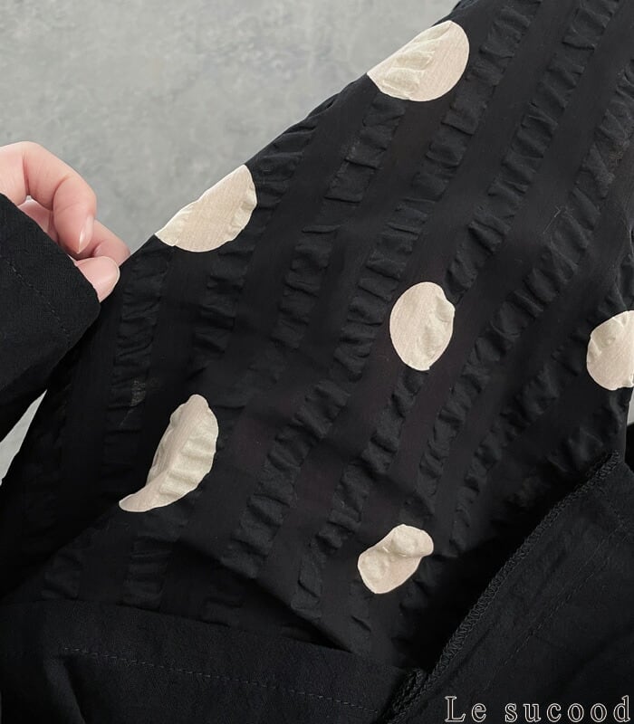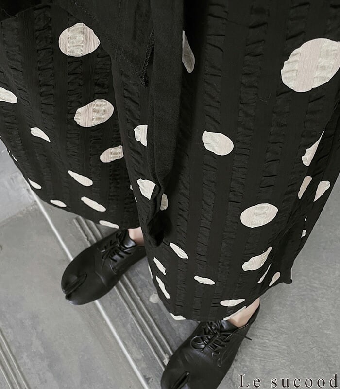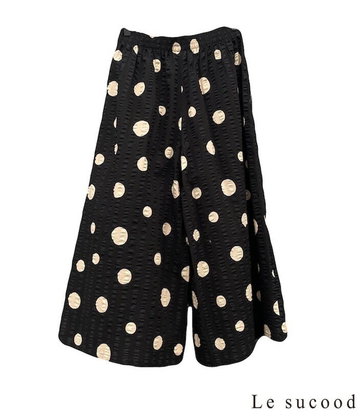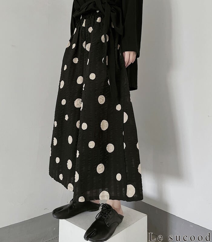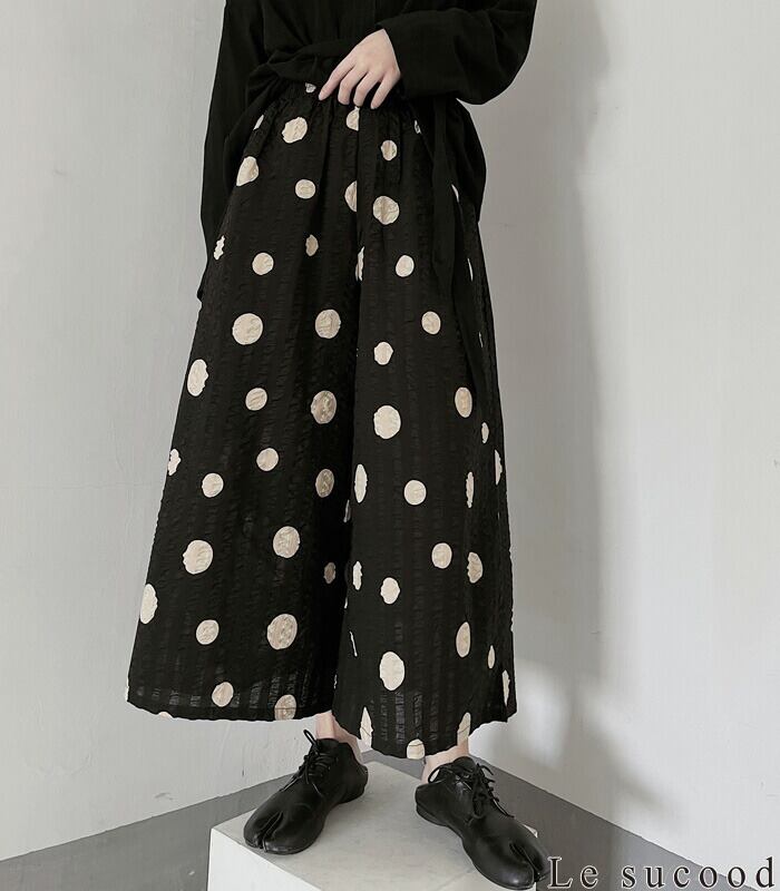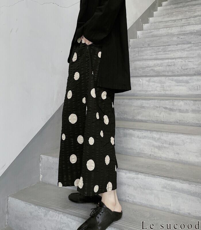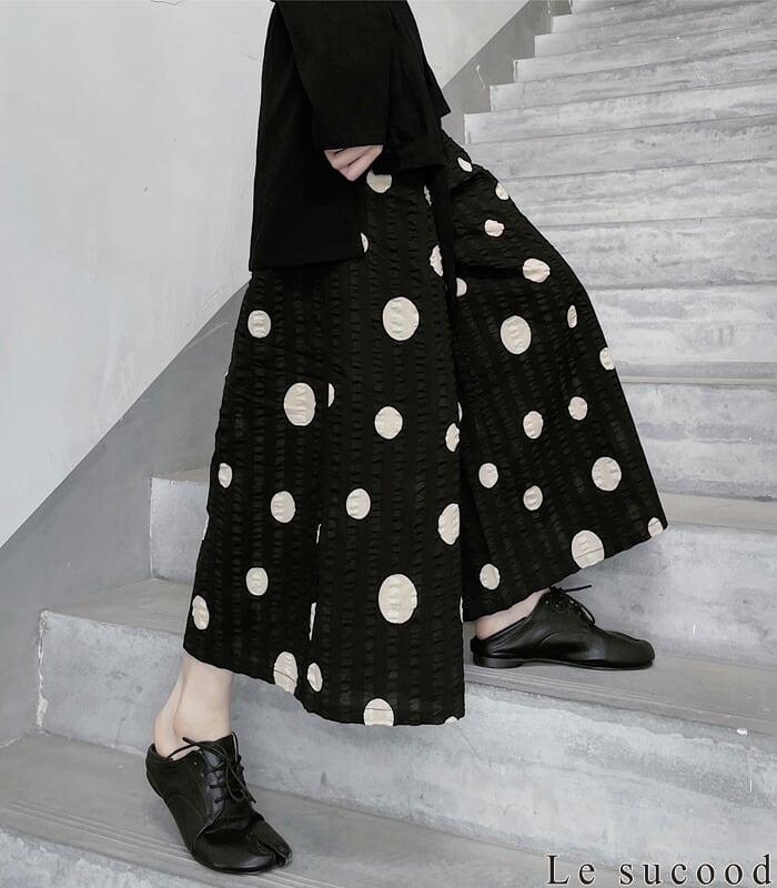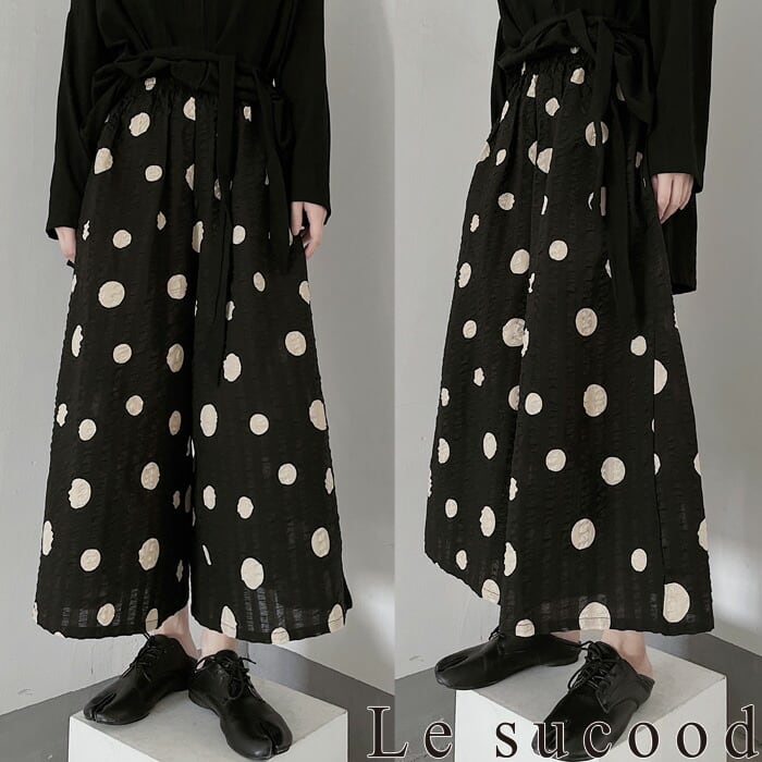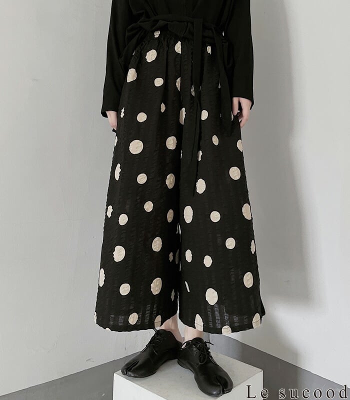 【Le sucood】【お支払い確認後20日以内発送】九分丈水玉ワイドパンツ ワイドレッグパンツ ガウチョパンツ ドットワイドパンツ ボリュームパンツ ビッグシルエット オーバーサイズ ゆったり ドット 大人カジュアル フェミニン きれいめ シンプル 青文字系 レディース モード系 ファッション