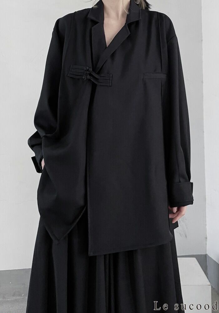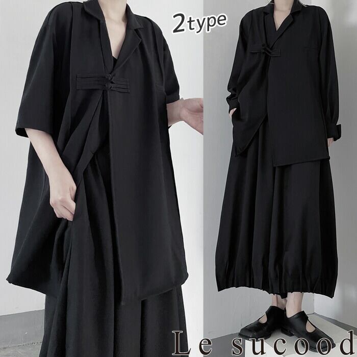 【Le sucood】【お支払い確認後20日以内発送】チャイナボタンジャケットシャツ シャツジャケット オーバーサイズ ゆったり チャイナボタン 変形デザイン 羽織り ダボシャツ チャイナシャツ チャイナ服 半袖 長袖 大人カジュアル レディース ストリート モード系 サロン系 個性的 原宿系 青文字系 | Le sucood