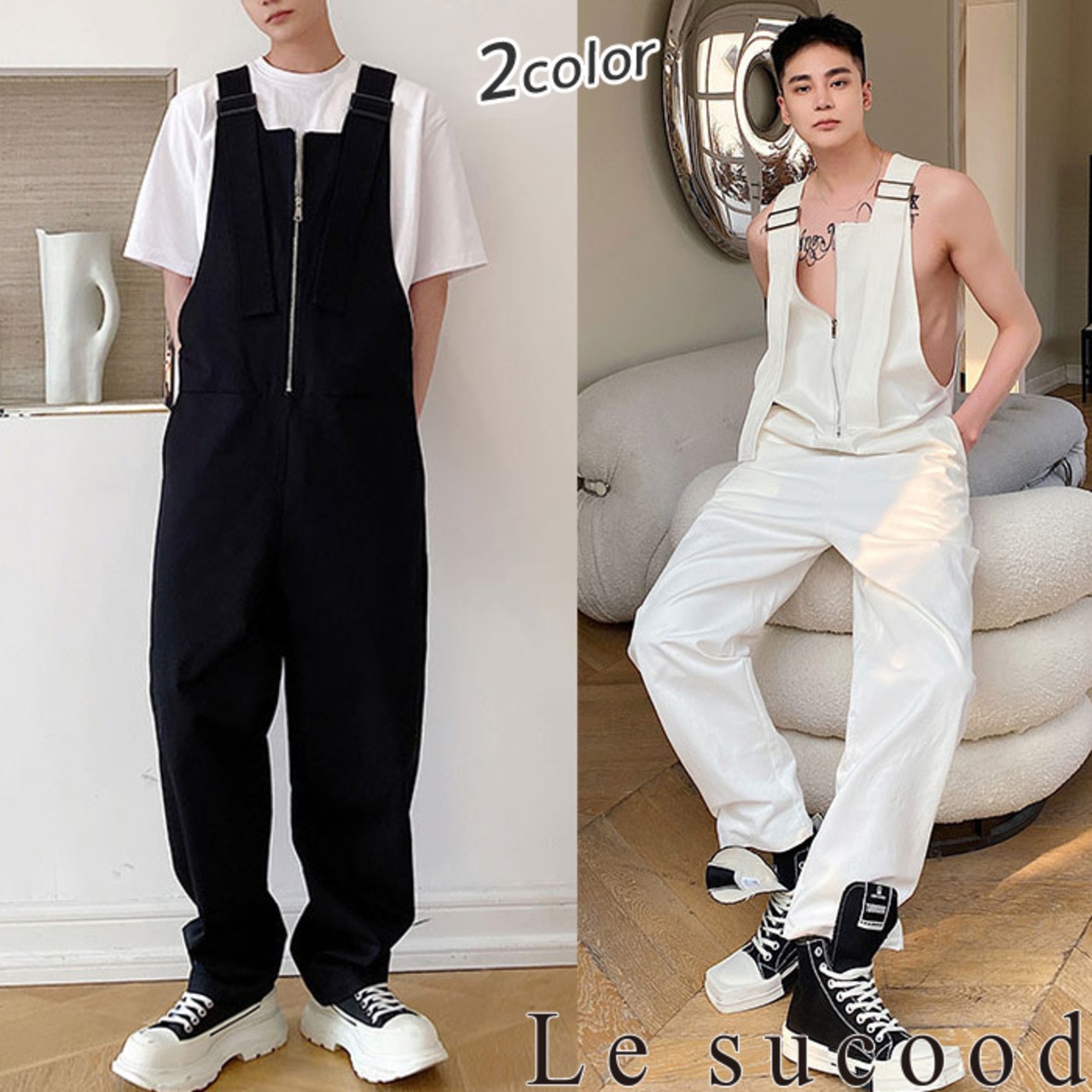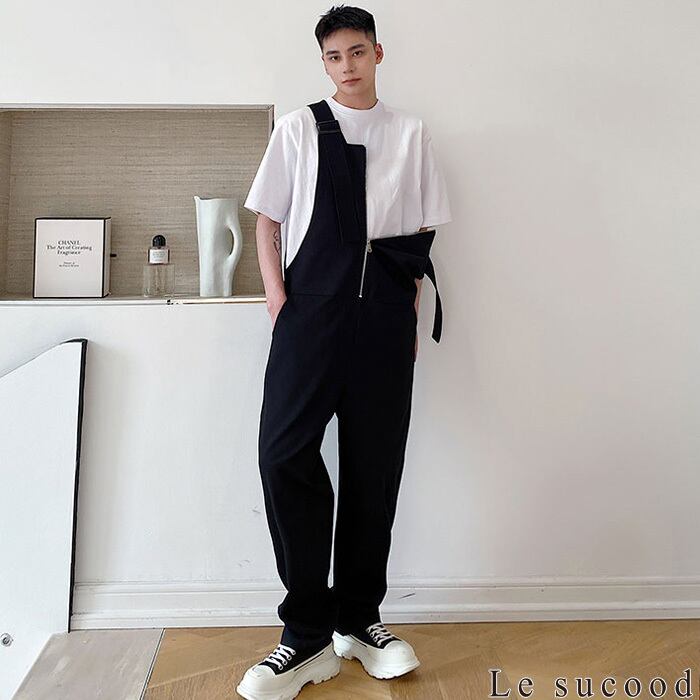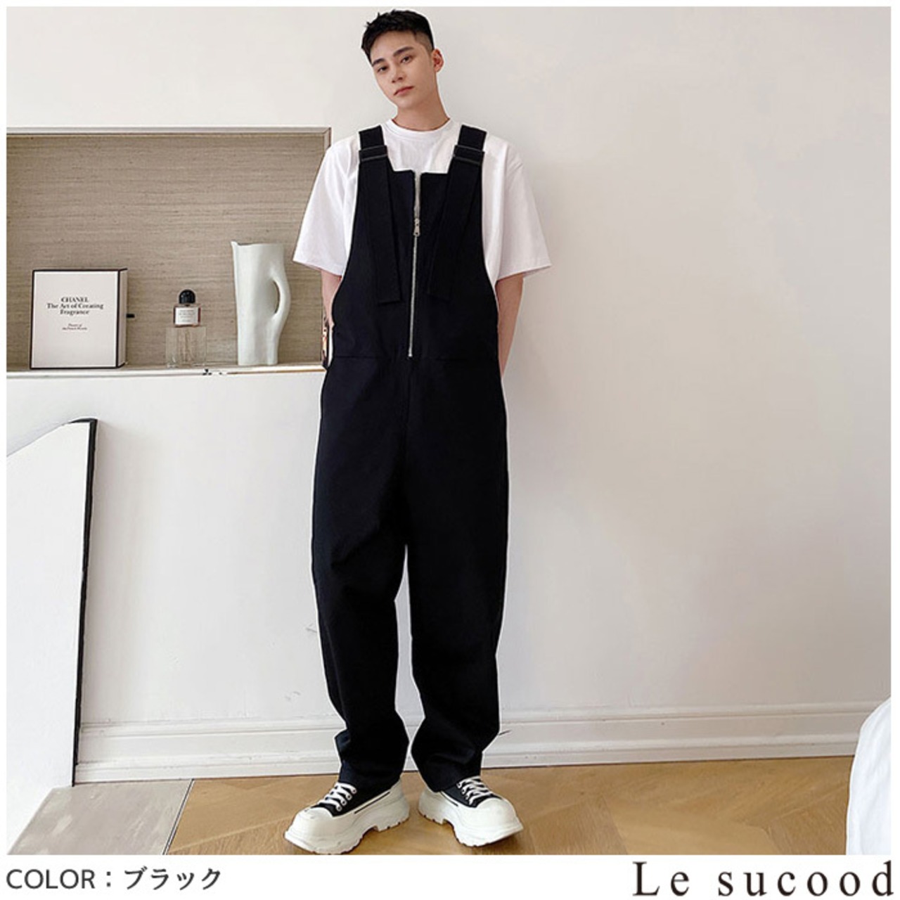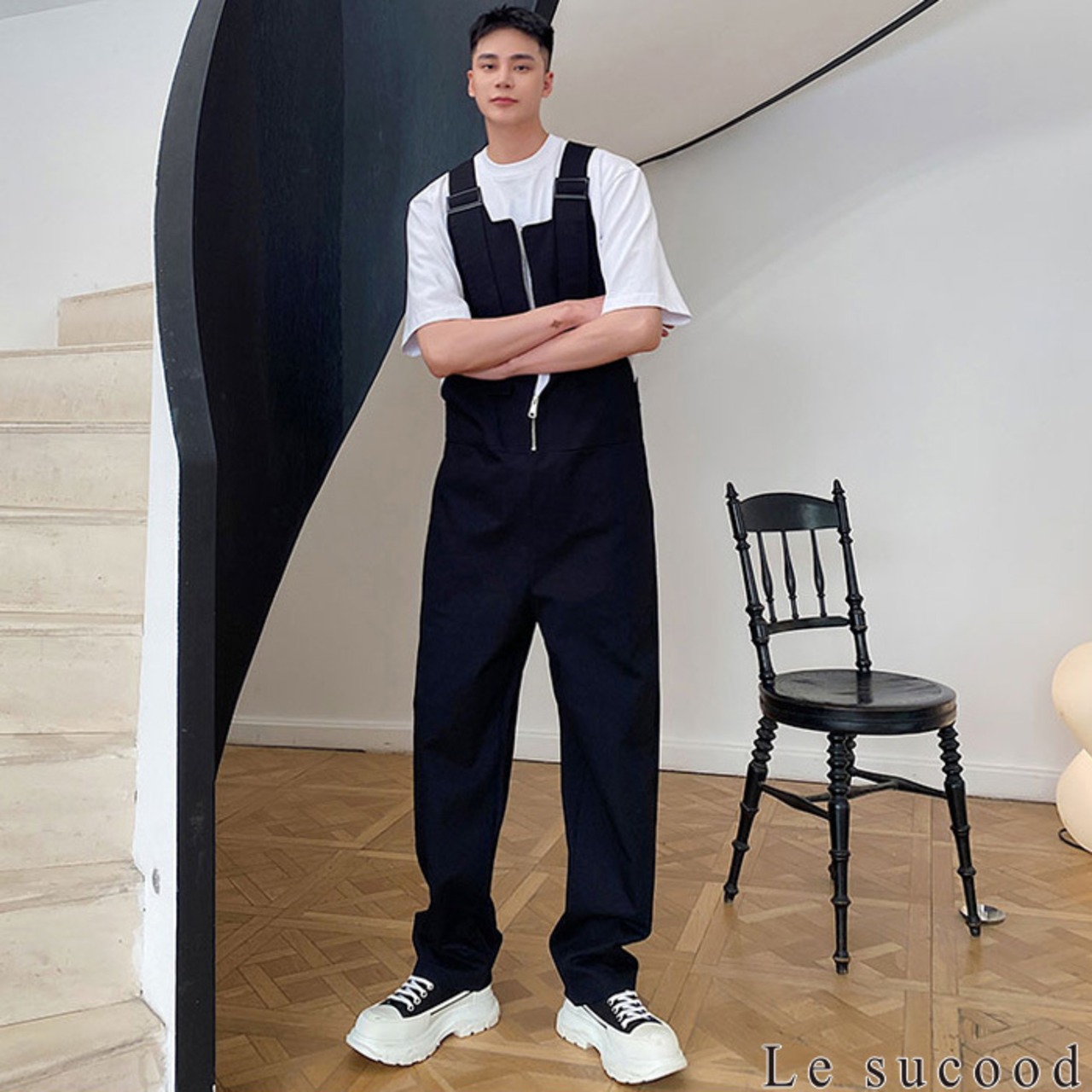 【Le sucood】【お支払い確認後20日以内発送】ジップアップオーバーオール サロペット オールインワン つなぎ ペインターパンツ ワークパンツ モノトーン ロングパンツ ストレートパンツ ボトム 個性的 ゆったり カジュアル シンプル HIPHOP メンズ モード系 サロン系 ストリート 原宿系 青文字系 | Le sucood