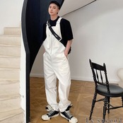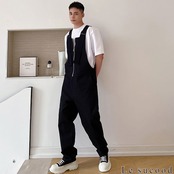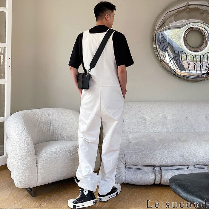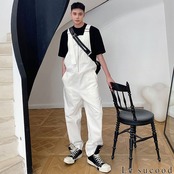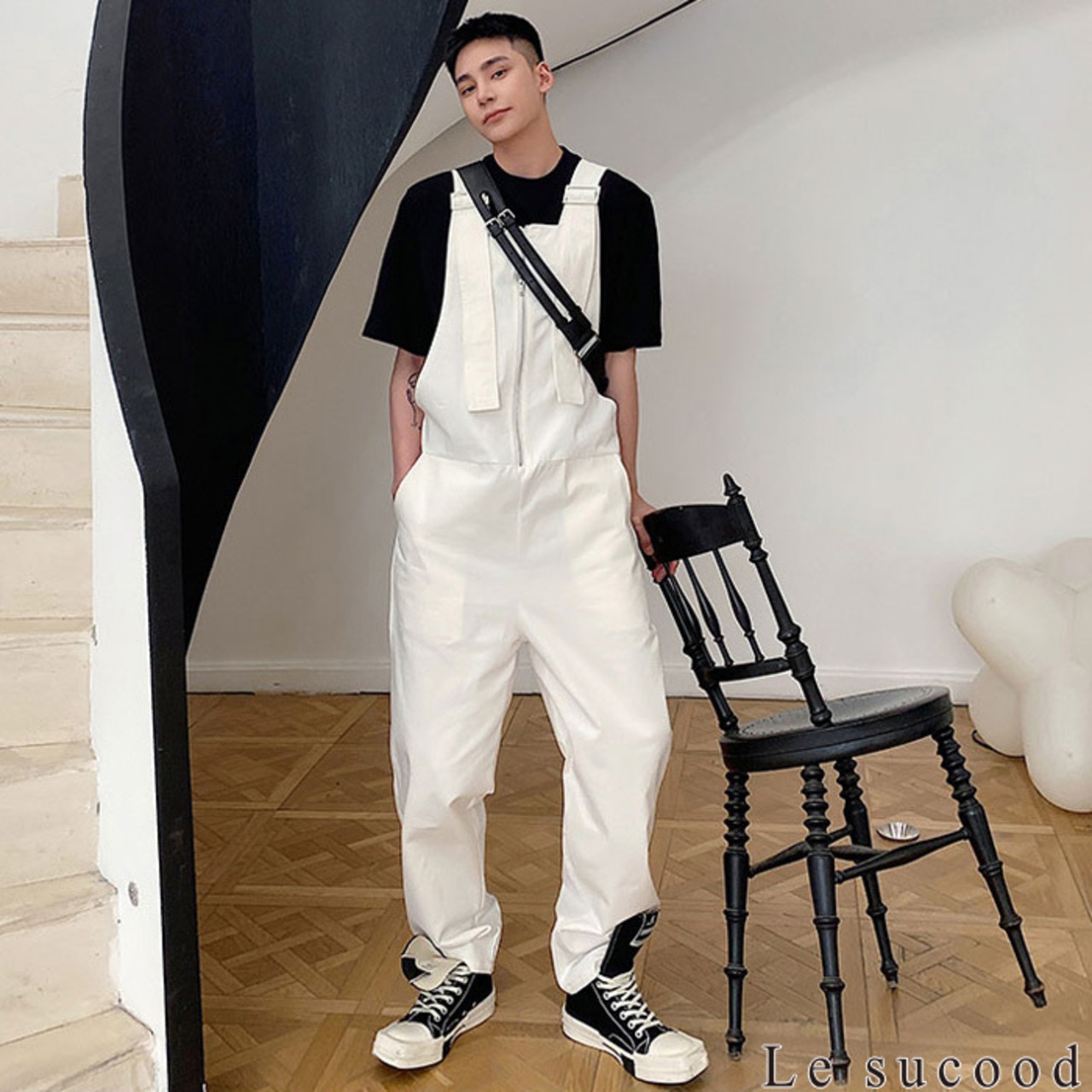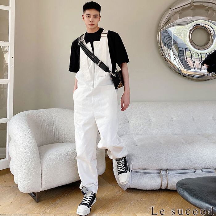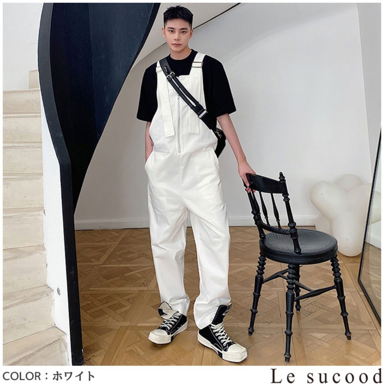 【Le sucood】【お支払い確認後20日以内発送】ジップアップオーバーオール サロペット オールインワン つなぎ ペインターパンツ ワークパンツ モノトーン ロングパンツ ストレートパンツ ボトム 個性的 ゆったり カジュアル シンプル HIPHOP メンズ モード系 サロン系 ストリート 原宿系 青文字系 | Le sucood