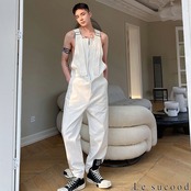 ジップ使いで着こなしに変化を付けられるお洒落なオーバーオールです。