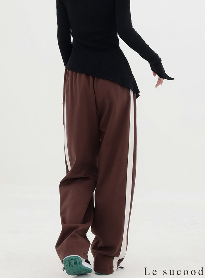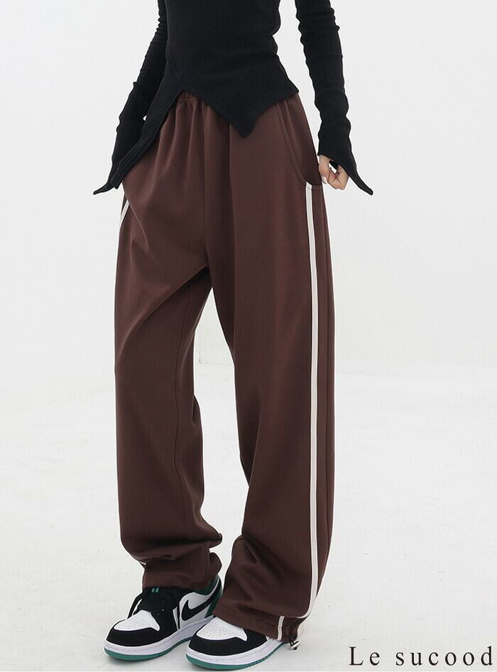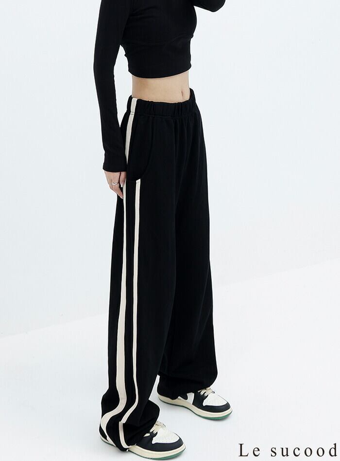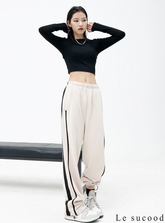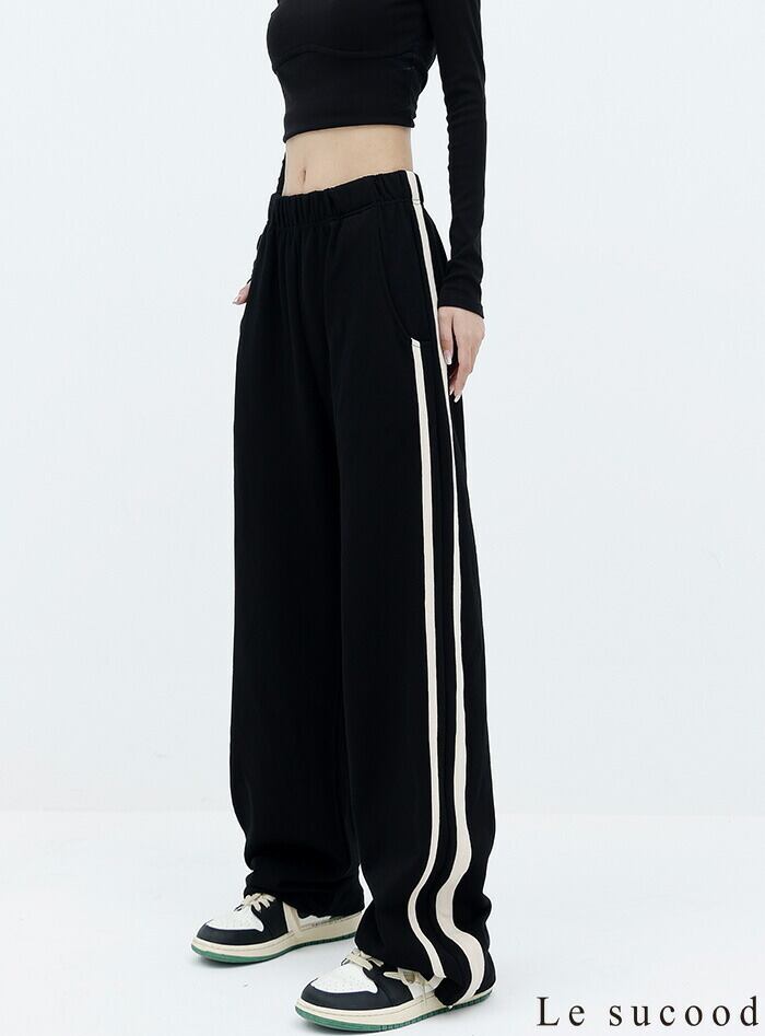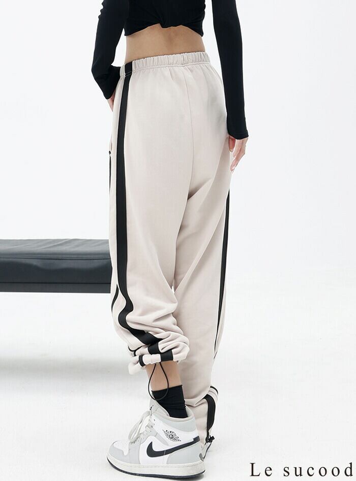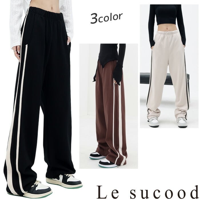 【Le sucood】【お支払い確認後20日以内発送】【送料無料】Le sucood 秋冬用 ジャージパンツ モードストリート トラックパンツ ジョガーパンツ サイドラインパンツ ラインジャージ オーバーサイズ ダボパン バギーパンツ ロングパンツ トレーニングパンツ ワンマイルウェア レディース モード系 個性的 原宿系 青文字系