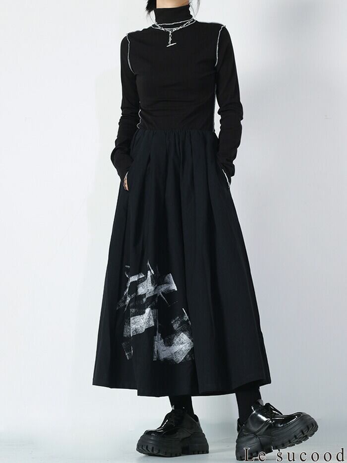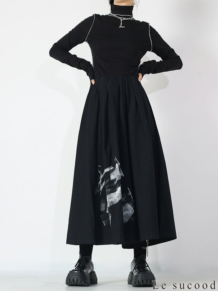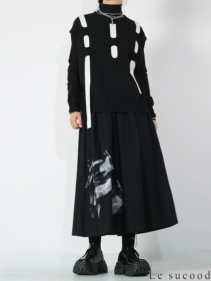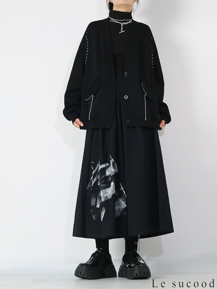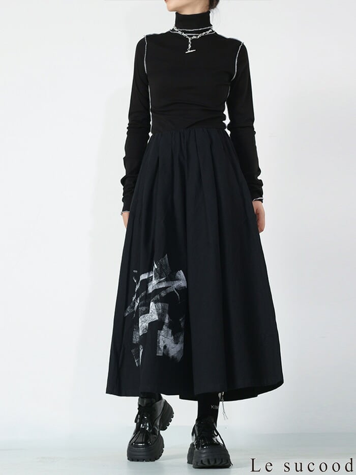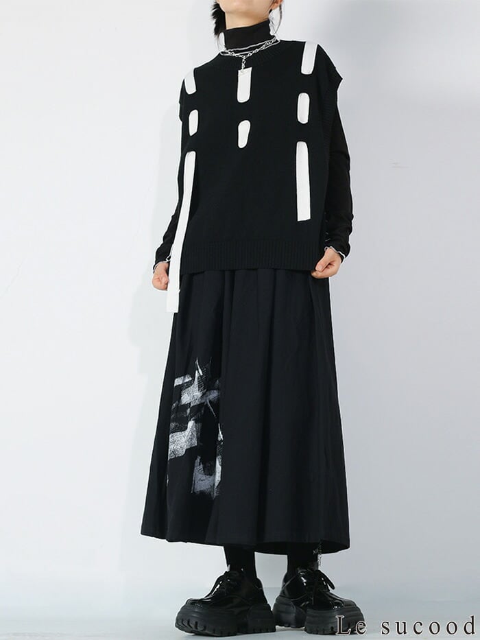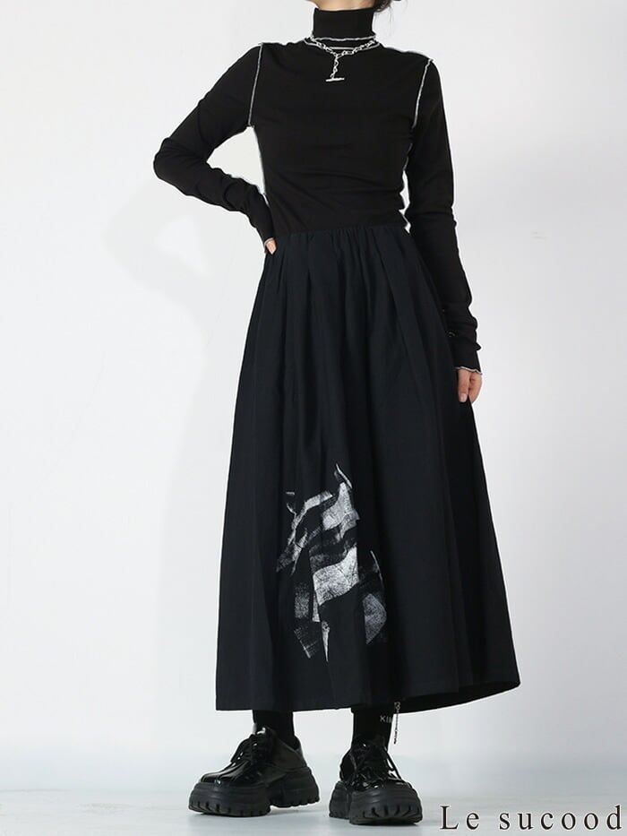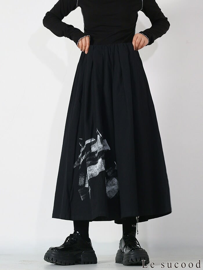 モードな雰囲気のグラフィックでセンス良く穿きこなせるキュロットスカートです。