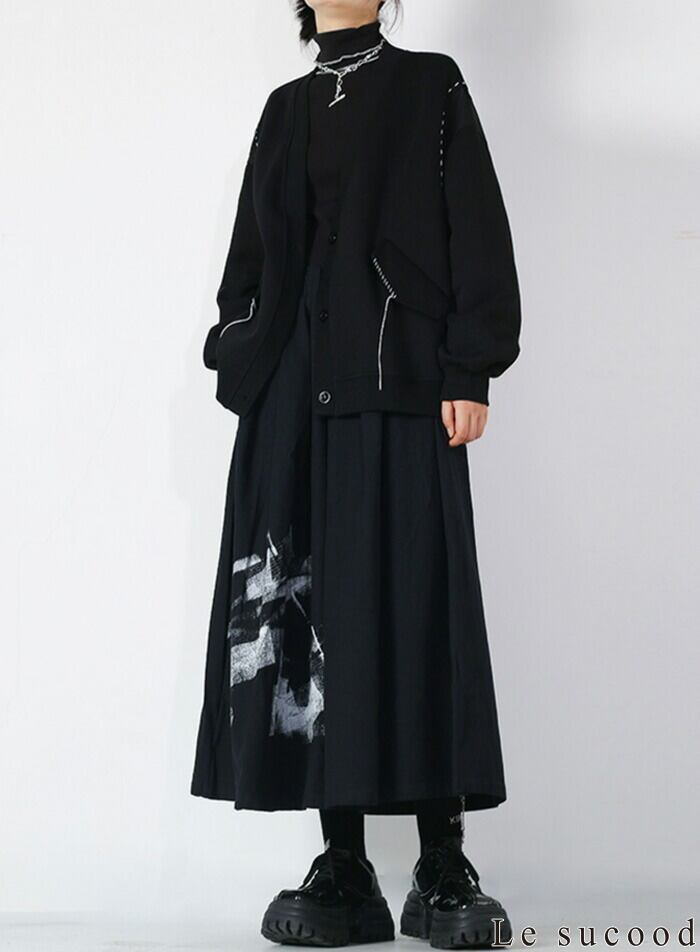 【Le sucood】【お支払い確認後20日以内発送】 和モードキュロットスカート デザインスカート ガウチョ スカーチョ ワイドパンツ ロング Aライン ミモレ丈 ハイウエスト ウエストゴム ゆったり 大人カジュアル きれいめ シンプル 大人カジュアル レディース ストリート モード系 個性的 原宿系 青文字系 | Le sucood