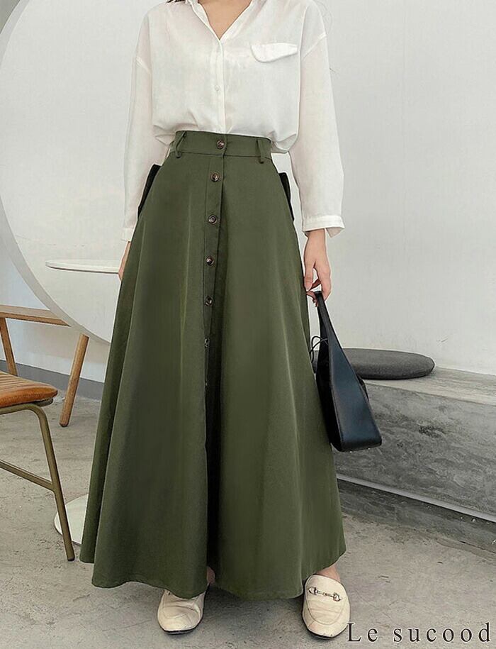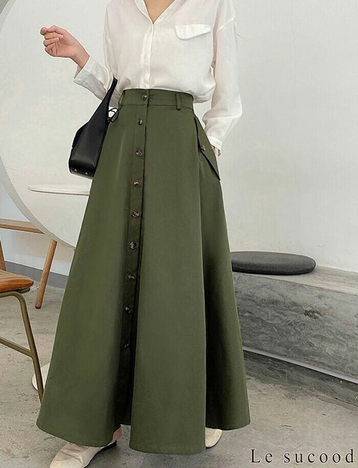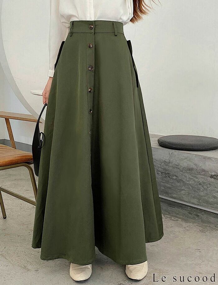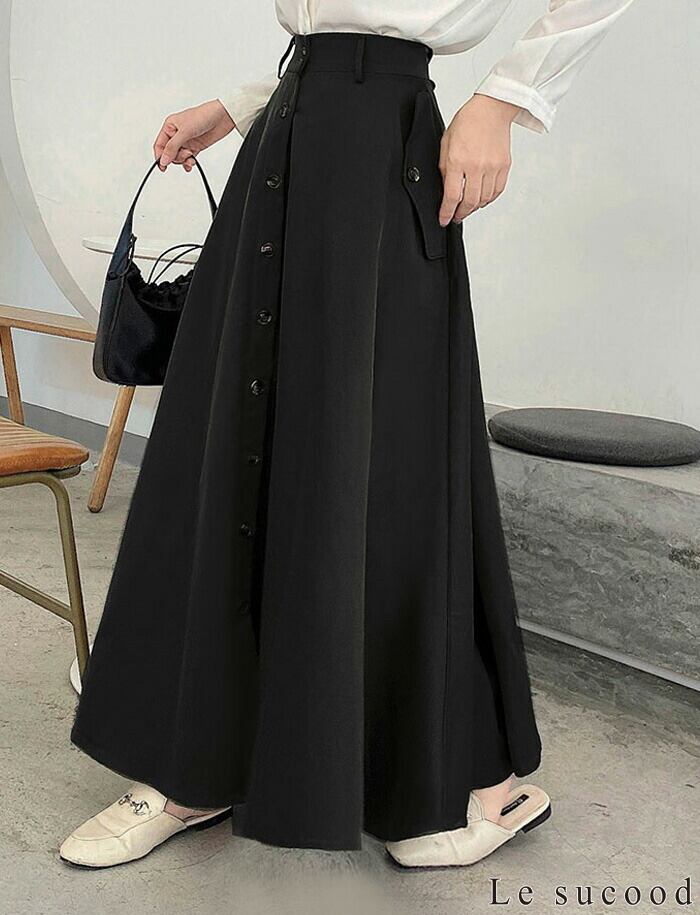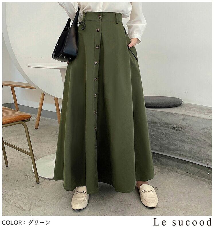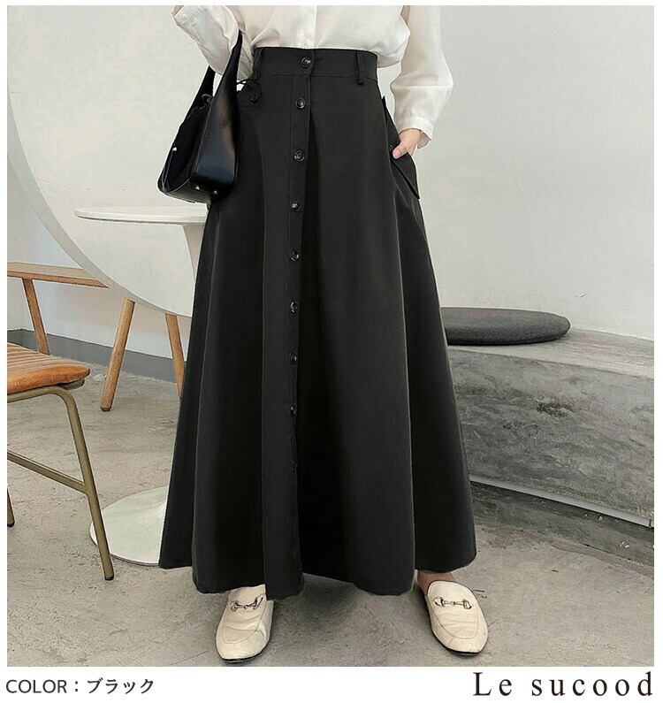 【Le sucood】【お支払い確認後20日以内発送】3色から選べる 春スカート プリーツロングスカート ロングスカート シングルブレストスカート Aライン ハイウエスト マキシ丈 アンクル丈 大人可愛い きれいめ 大人レディ シンプル 大人カジュアル レディース モード系 個性的 原宿系 青文字系 | Le sucood