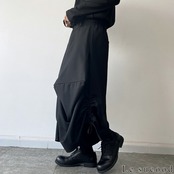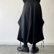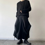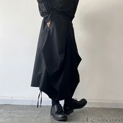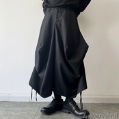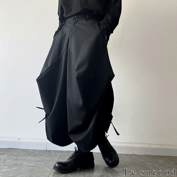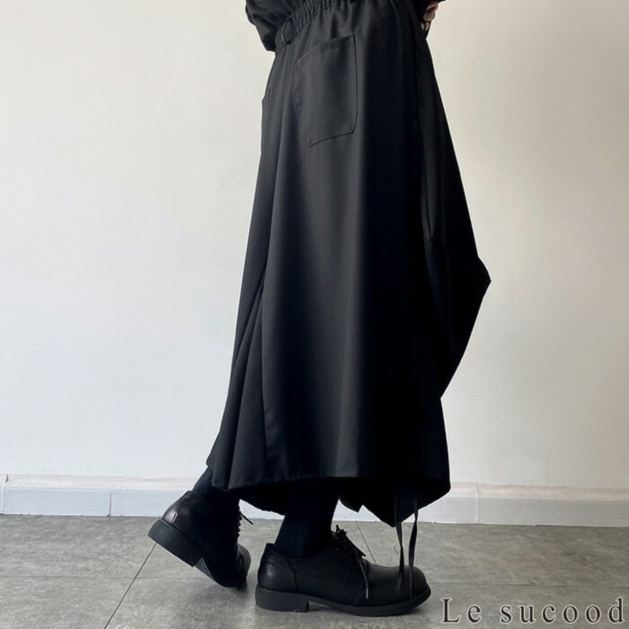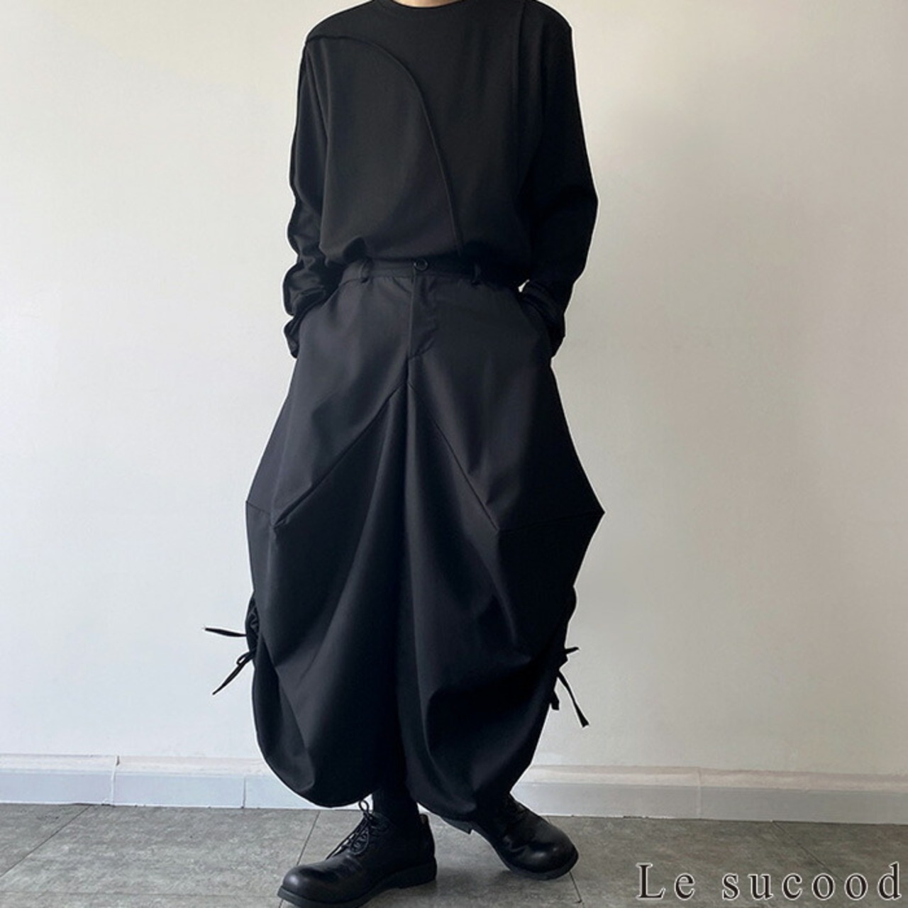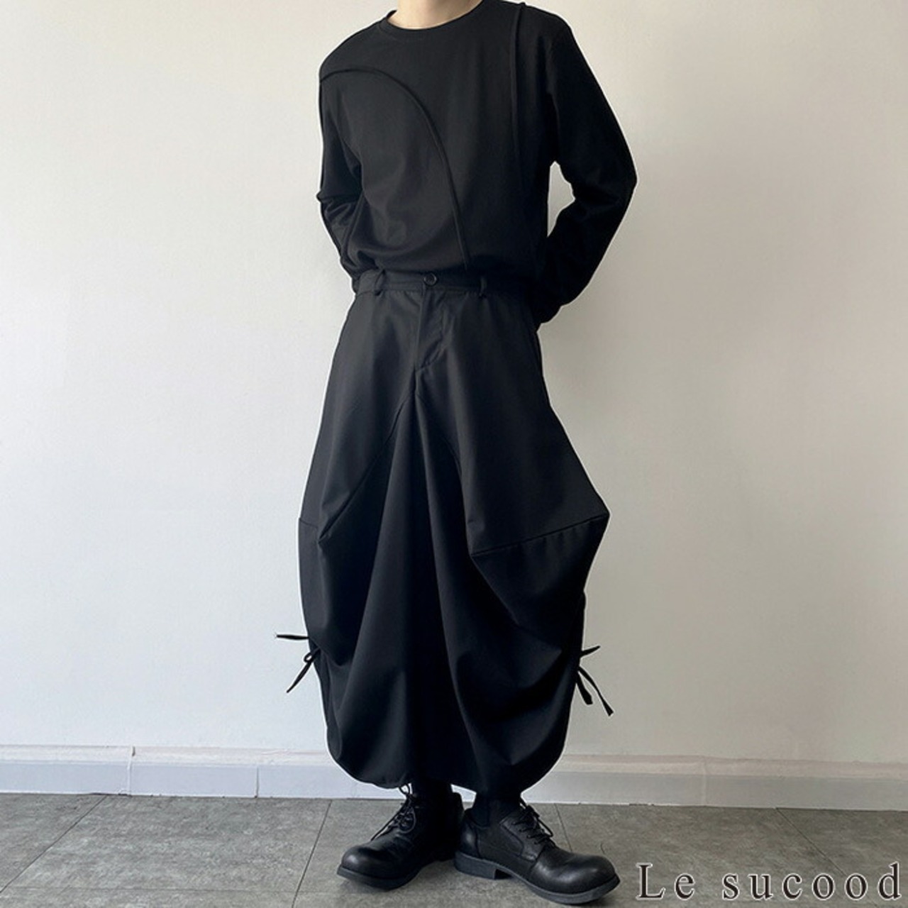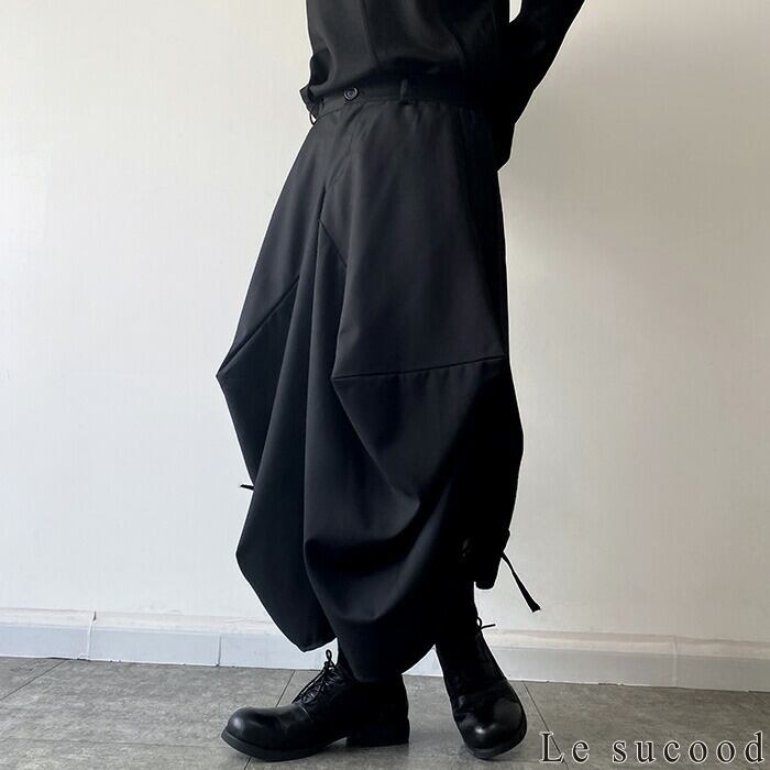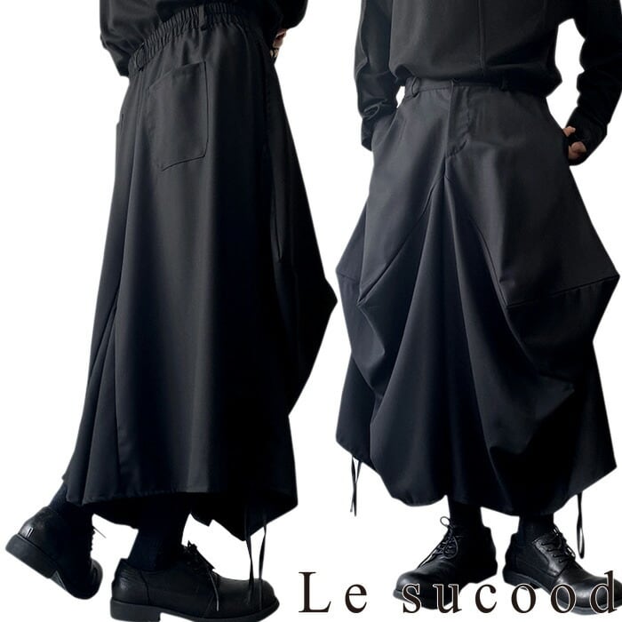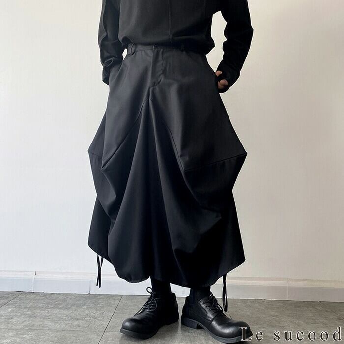 【Le sucood】【お支払い確認後20日以内発送】 黒無地 変形メンズスカート デザインスカート バルーンスカート プリーツスカート スカーチョ ワイドパンツ キュロット ワイドレッグパンツ オーバーサイズ ゆったり カジュアル フェミニン メンズ ストリート モード系 サロン系 個性的 原宿系 青文字系 | Le sucood