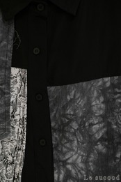 モノトーンの色々な柄を張り合わせたようなモードなデザインのシャツです。