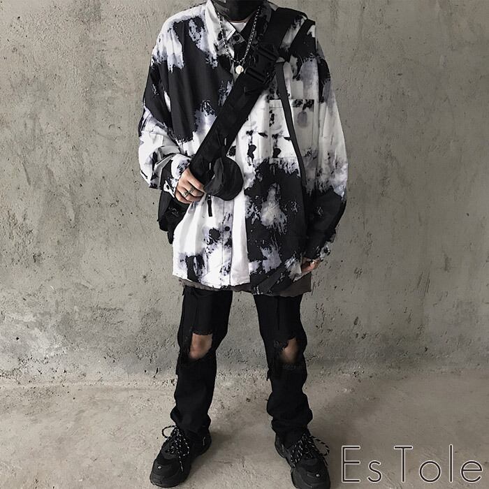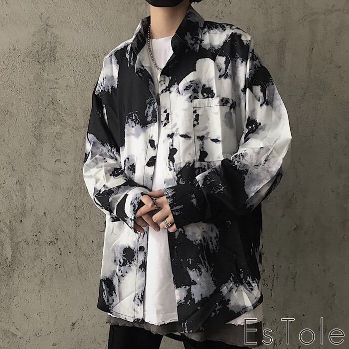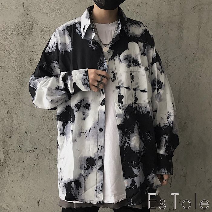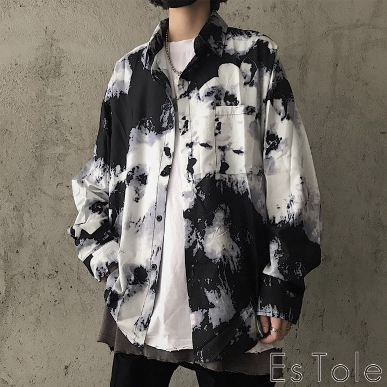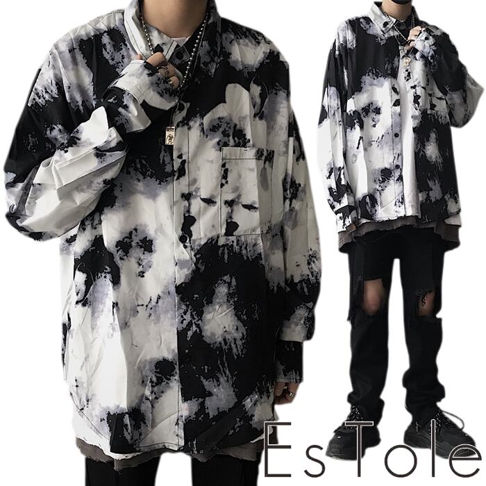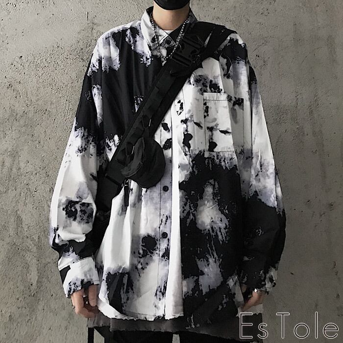 【お支払い確認後20日以内発送】EsTole モザイク柄シャツ 長袖シャツ ゴシックシャツ 柄シャツ ドレスシャツ ゆったり プリントシャツ ダボシャツ ストリート系 メンズ モード系 個性的 ロック パンク 原宿系 エストール