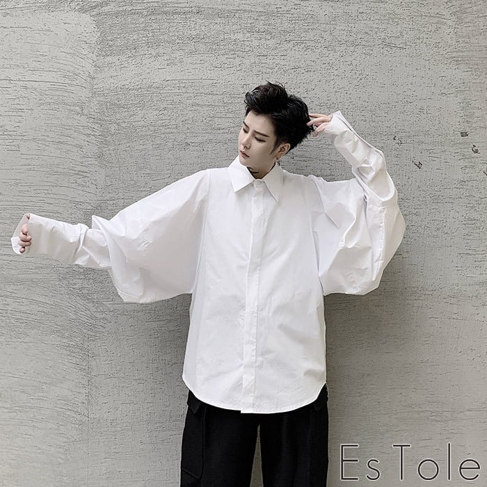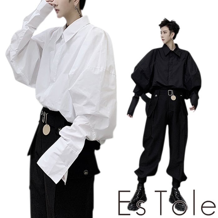 【お支払い確認後20日以内発送】EsTole バルーンビッグスリーブシャツ バルーンスリーブブラウス オーバーサイズ ビッグシルエット パフスリープ ボリューム袖 バルーン袖 個性的 ゴシックシャツ ダボシャツ 白シャツ 長袖シャツ ワイシャツ メンズ モード系 ストリート 原宿系 エストール | Le sucood
