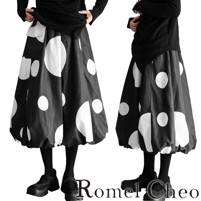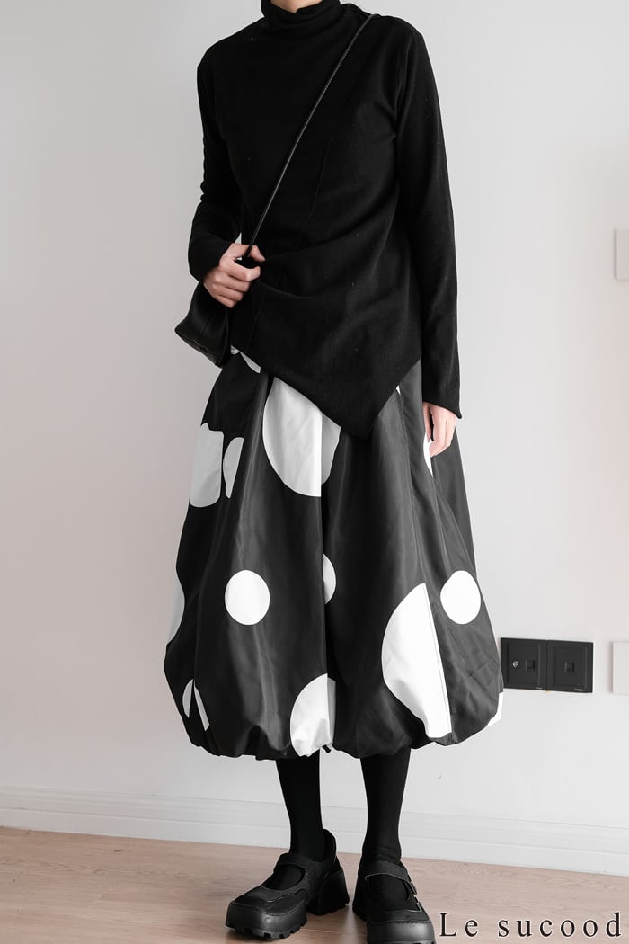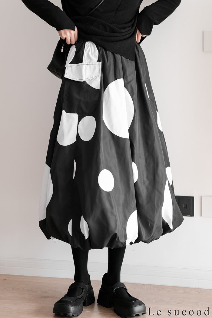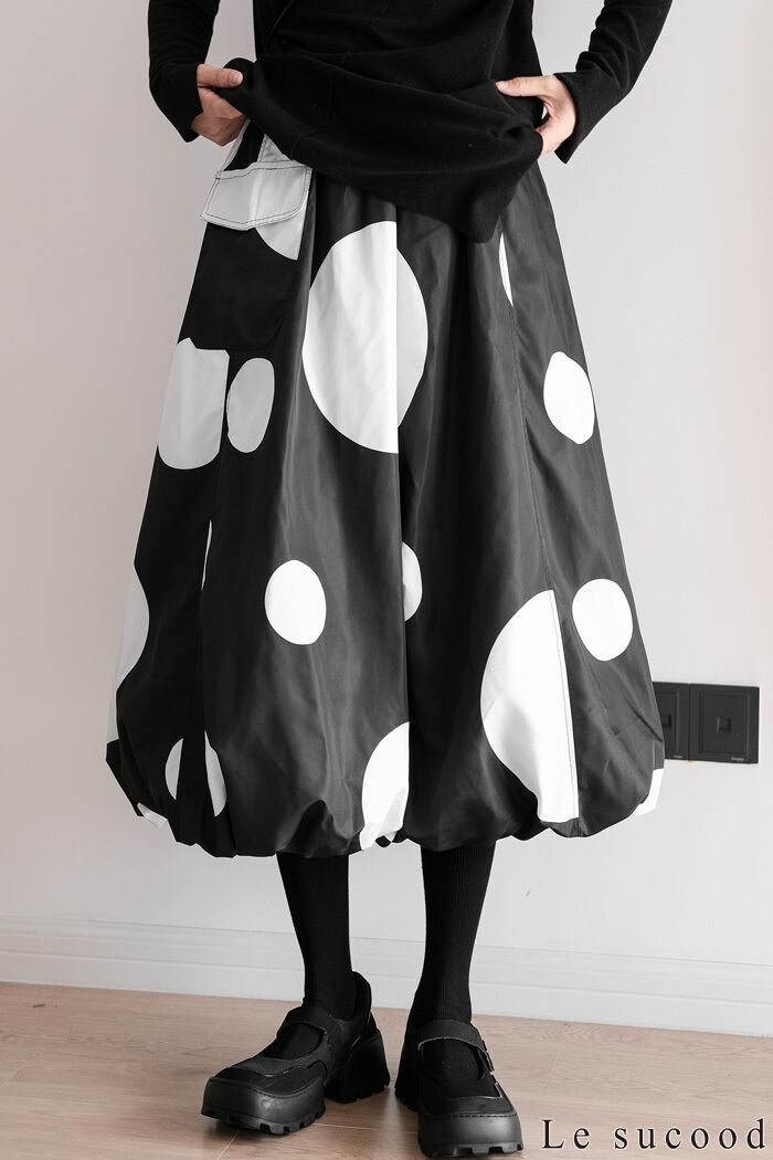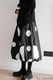 【お支払い確認後20日以内発送】Le sucood 水玉 バルーンスカート ワイドシルエット ドットスカート バギースカート ビッグシルエット オーバーサイズ ドット柄 レディース モード系 個性的 原宿系 ファッション