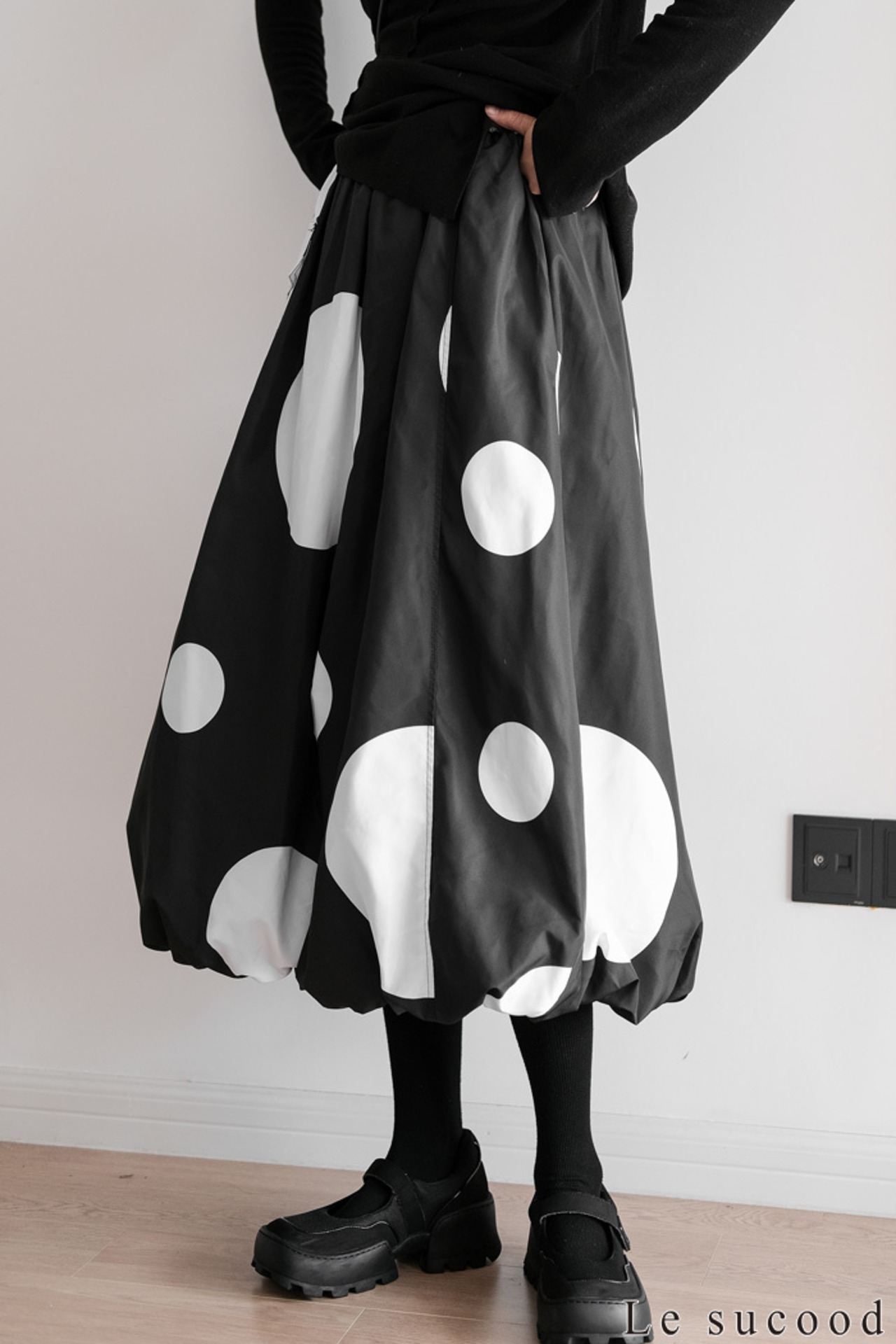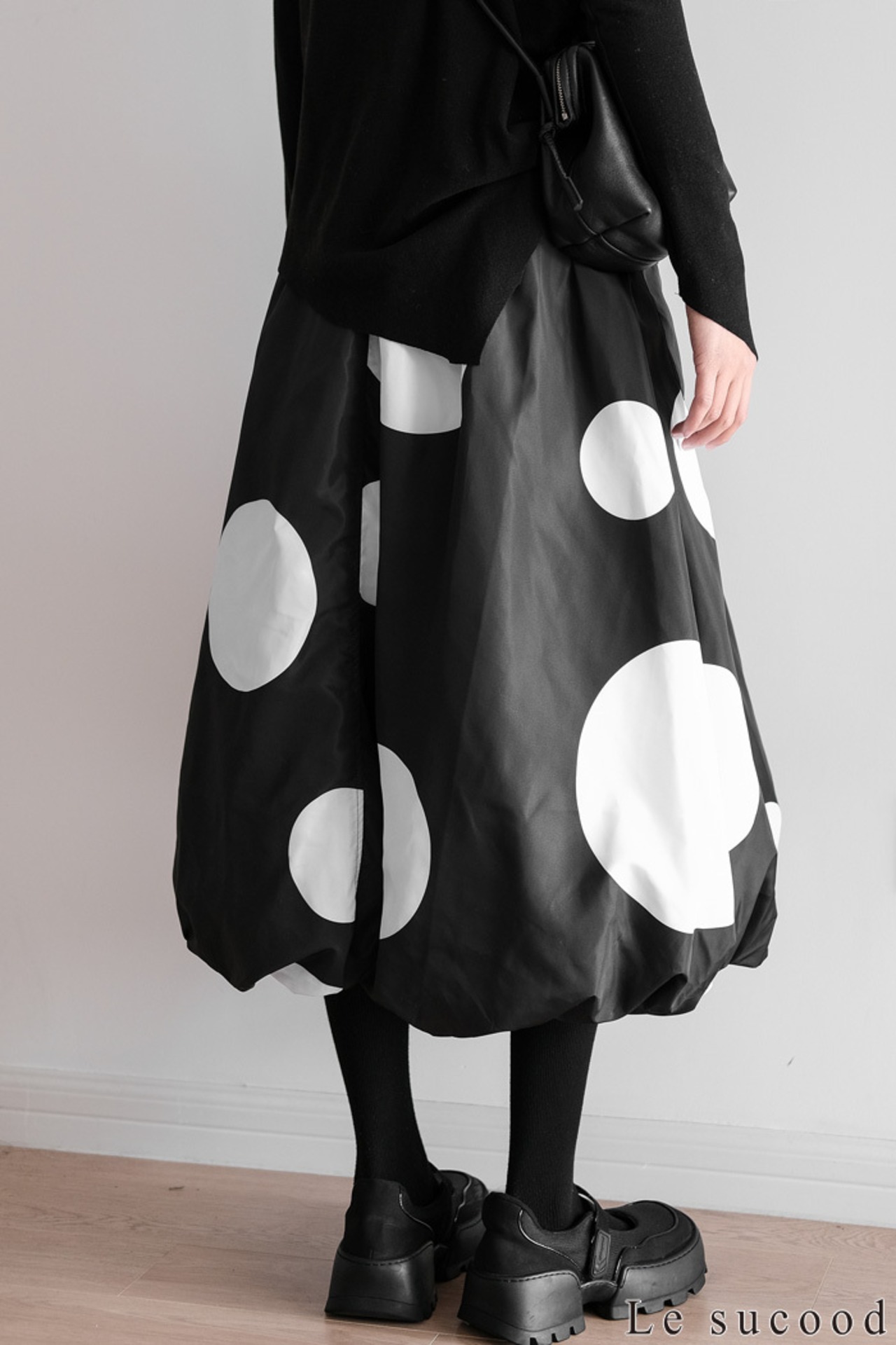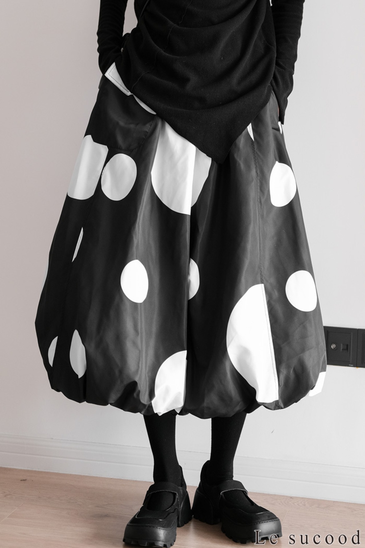 【お支払い確認後20日以内発送】Le sucood 水玉 バルーンスカート ワイドシルエット ドットスカート バギースカート ビッグシルエット オーバーサイズ ドット柄 レディース モード系 個性的 原宿系 ファッション