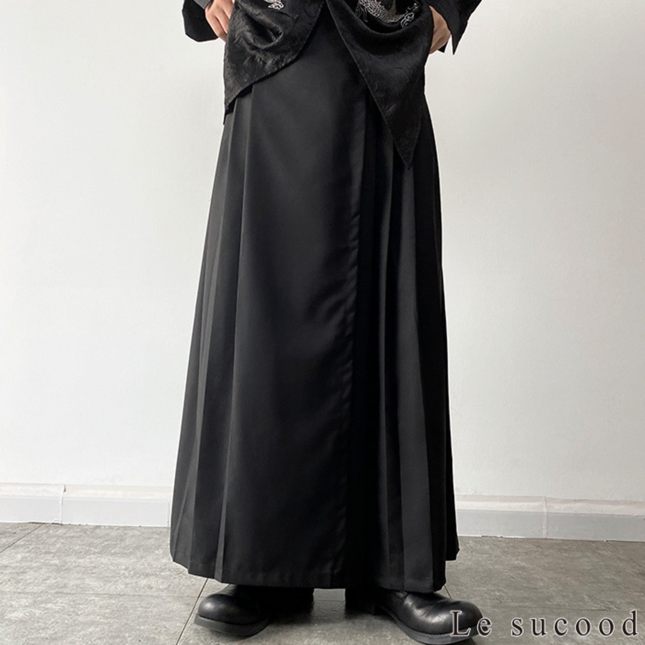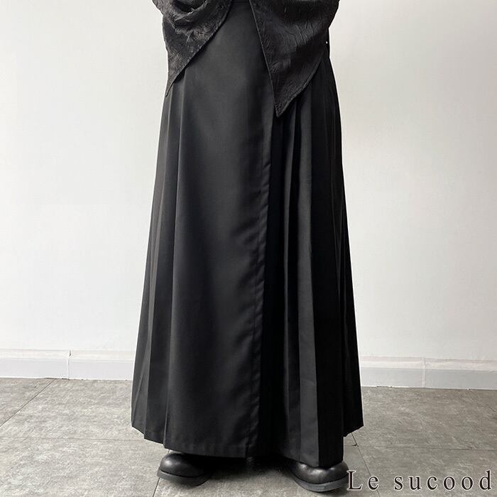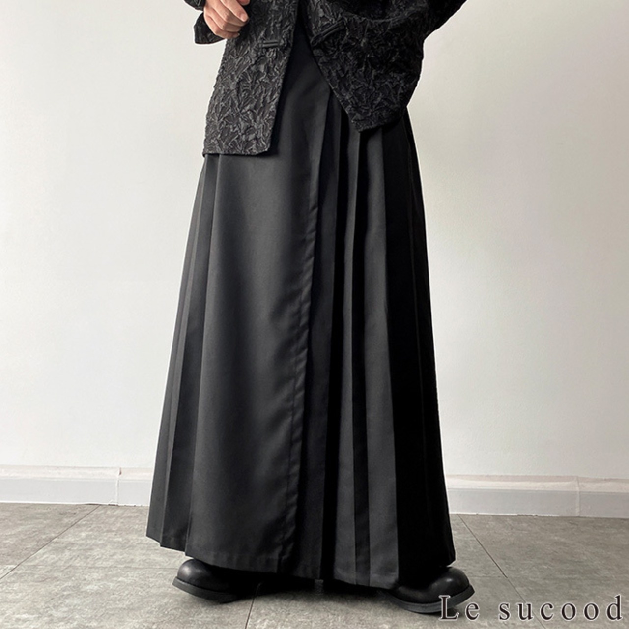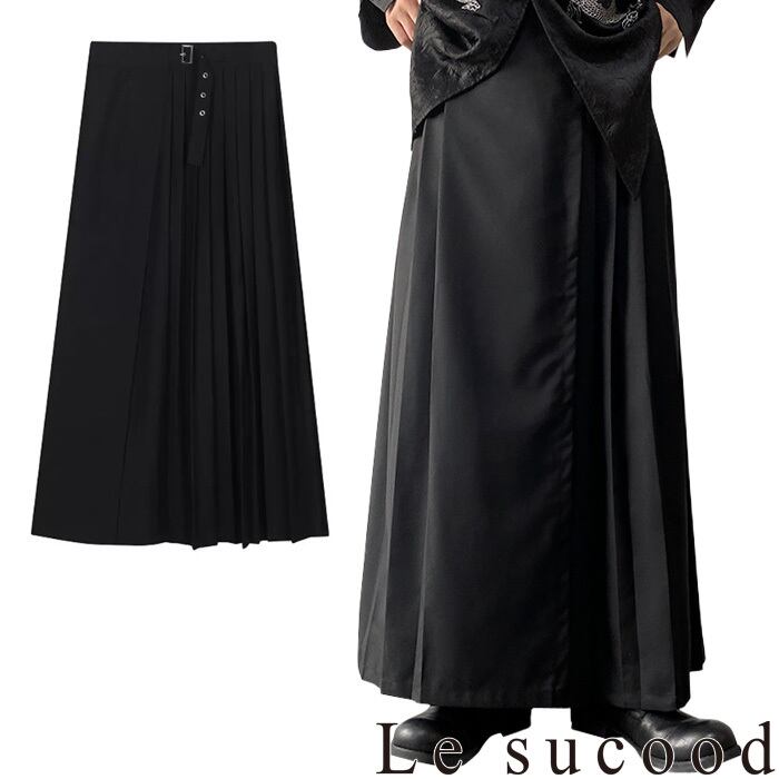 【お支払い確認後20日以内発送】Le sucood ベルト一体型 プリーツワイドパンツ メンズ 袴パンツ プリーツパンツ 変形ワイドパンツ キュロット ワイドレッグパンツ スカーチョ ロングスカート オーバーサイズ ゆったり カジュアル フェミニン ストリート モード系 サロン系 個性的 原宿系 青文字系 | Le sucood