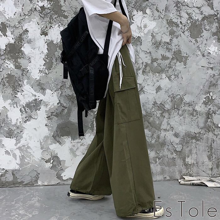 【お支払い確認後20日以内発送】EsTole ワイドワークパンツ ワイドパンツ カーゴパンツ ミリタリーパンツ ペインターパンツ ベイカーパンツ ガウチョパンツ オーバーサイズ ビッグシルエット オーバーサイズ ダボパン メンズ レディース モード系 原宿系 ストリート ファッション エストール