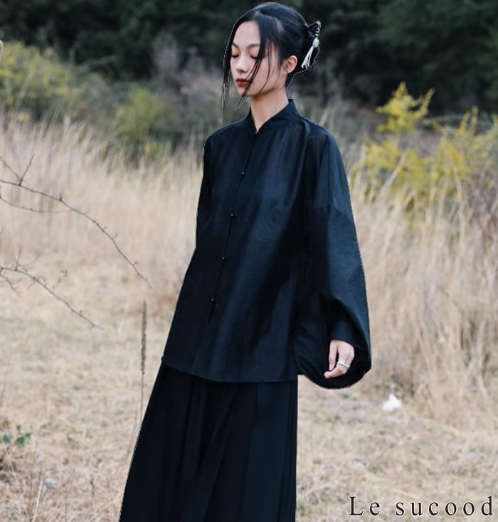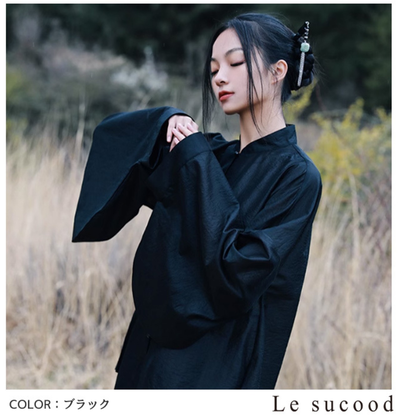 【お支払い確認後20日以内発送】Le sucood モダン漢服ボリュームスリーブシャツ スタンドカラーシャツ チャイナシャツ チャイナボタンシャツ ボリュームスリーブ フレアスリーブ ベルスリーブ アジアン エスニック レディース ストリート モード系 サロン系 個性的 原宿系 サロン系 青文字系 | Le sucood