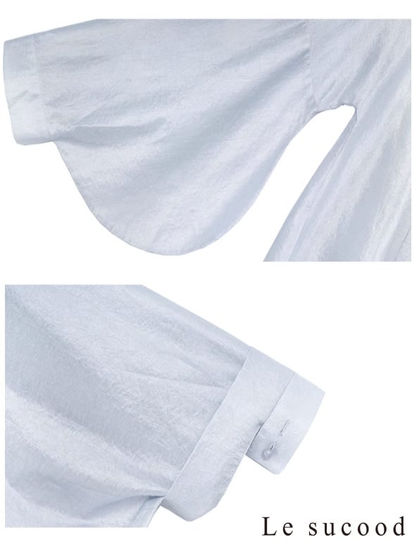 動く度に揺れ動く特徴的なボリュームスリーブがエレガントな雰囲気を演出してくれるシャツです。