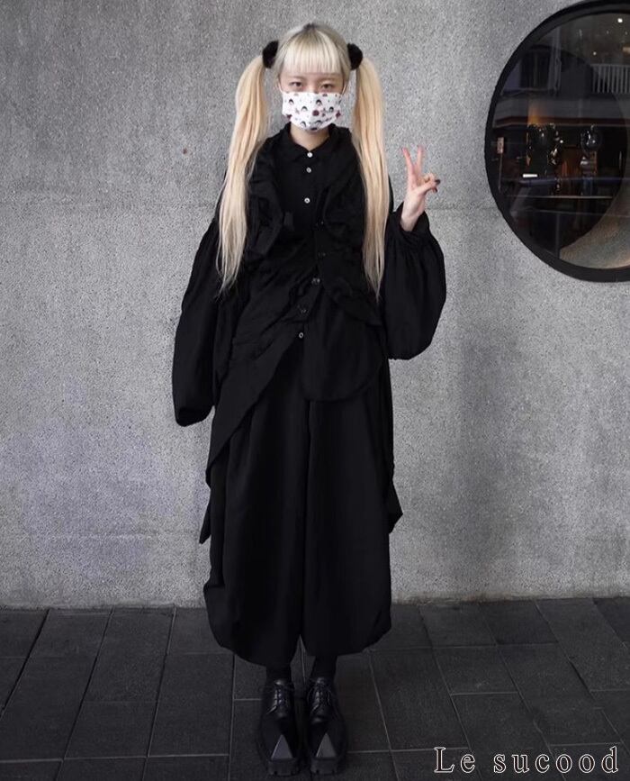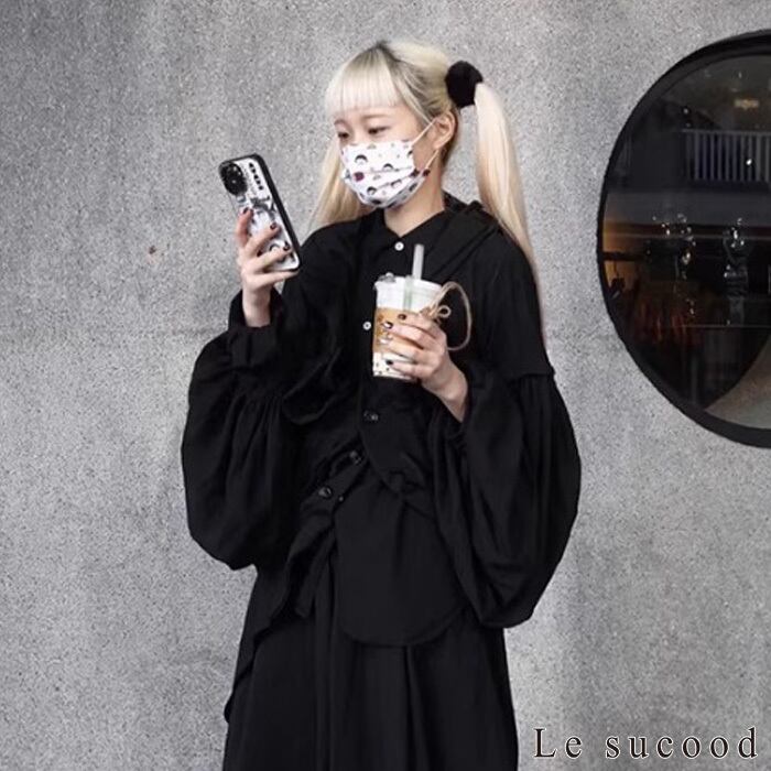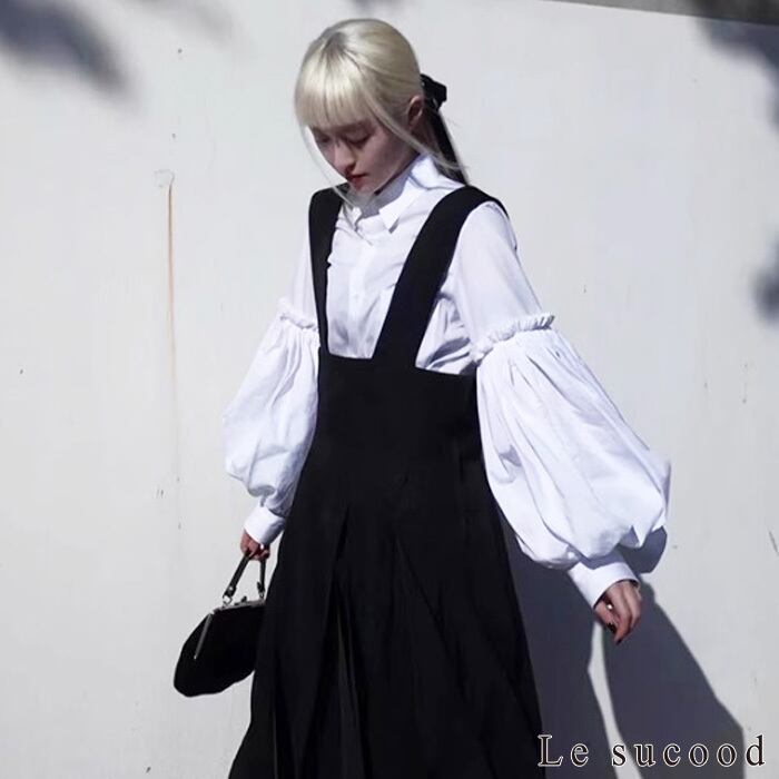 【お支払い確認後20日以内発送】Le sucood ルーズパフスリーブ長袖シャツ ボリュームスリーブシャツ 袖切り替えシャツ フレアスリーブ ベルスリーブ シャツ ブラウス 無地 モノトーン 長袖 きれいめ レディース ストリート モード系 サロン系 個性的 原宿系 サロン系 青文字系 | Le sucood